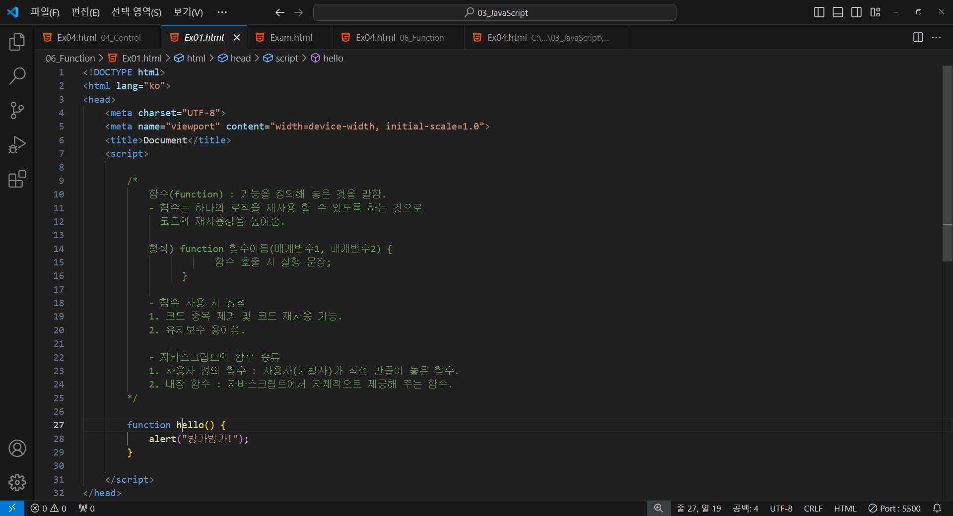 - 자바스크립트의 함수 종류
