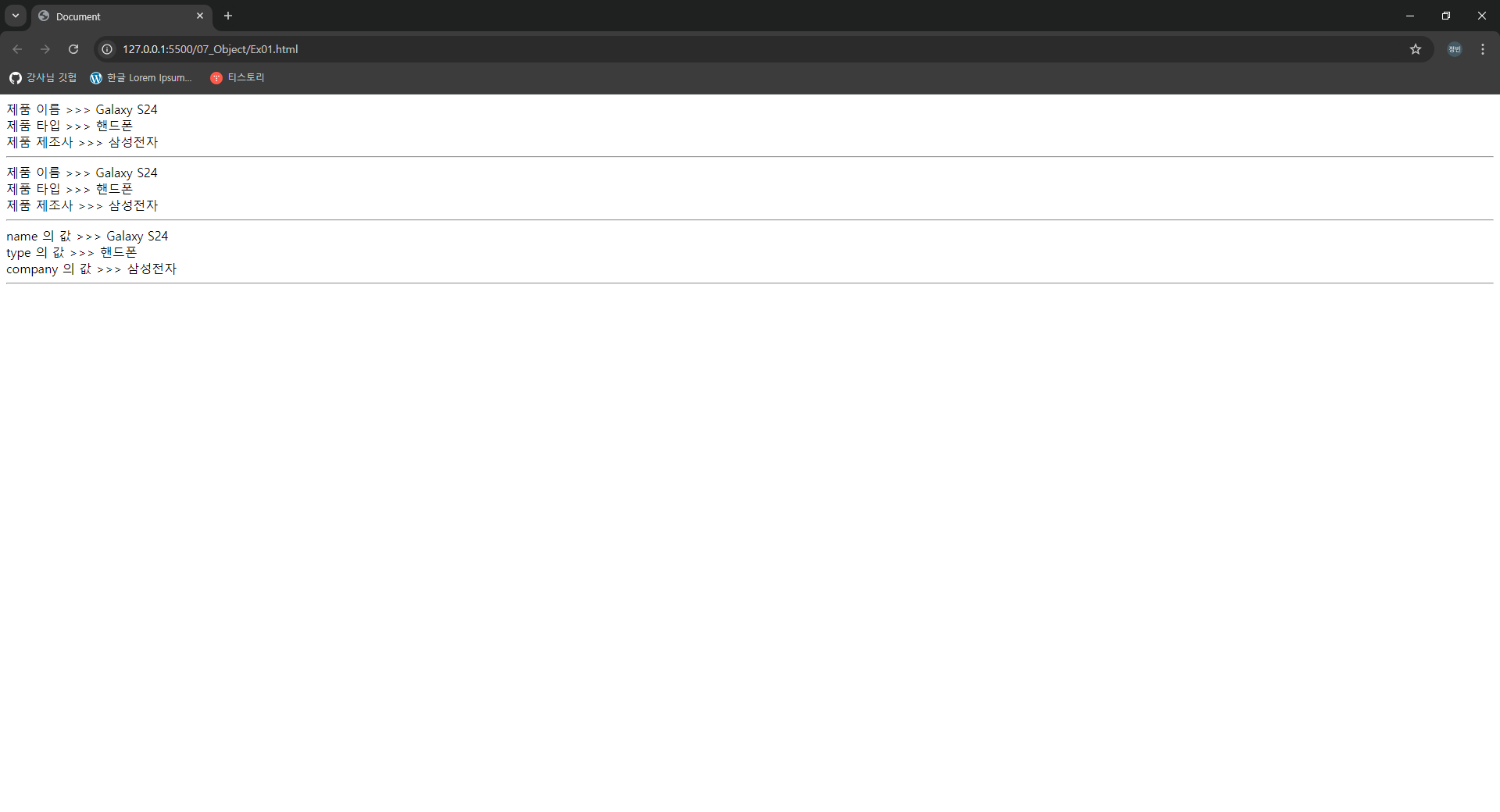 document.write(`제품 타입 >>> ${product['type']} <br>`);