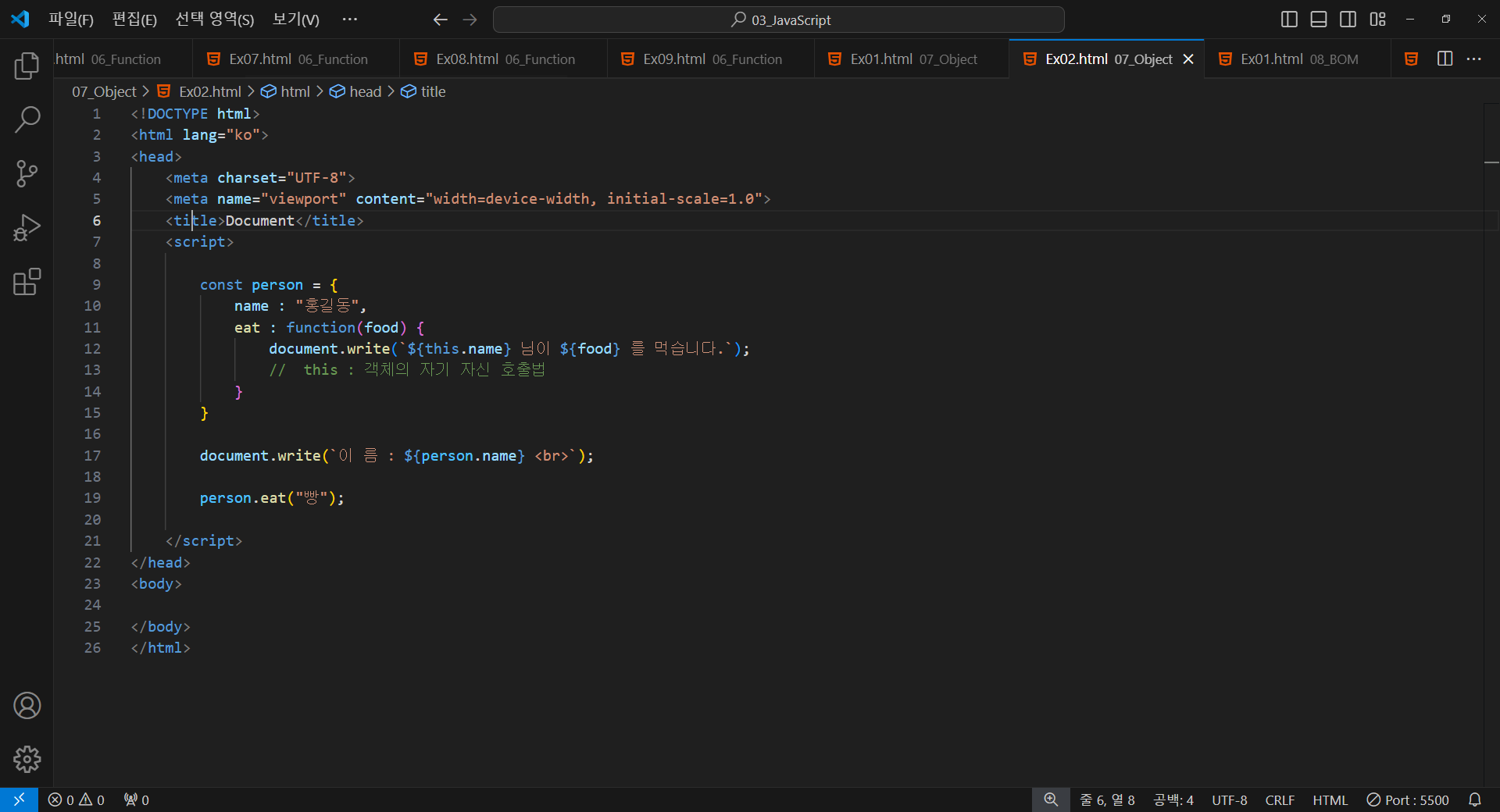 document.write(`${this.name} 님이 ${food} 를 먹습니다.`);