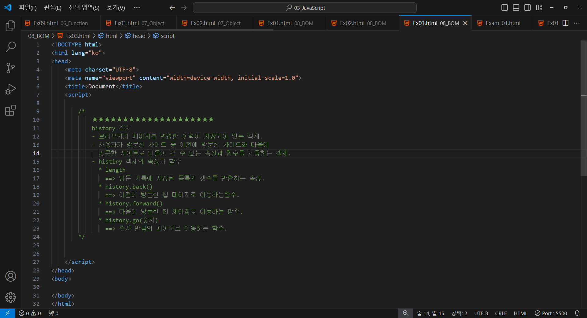 - histiry 객체의 속성과 함수
