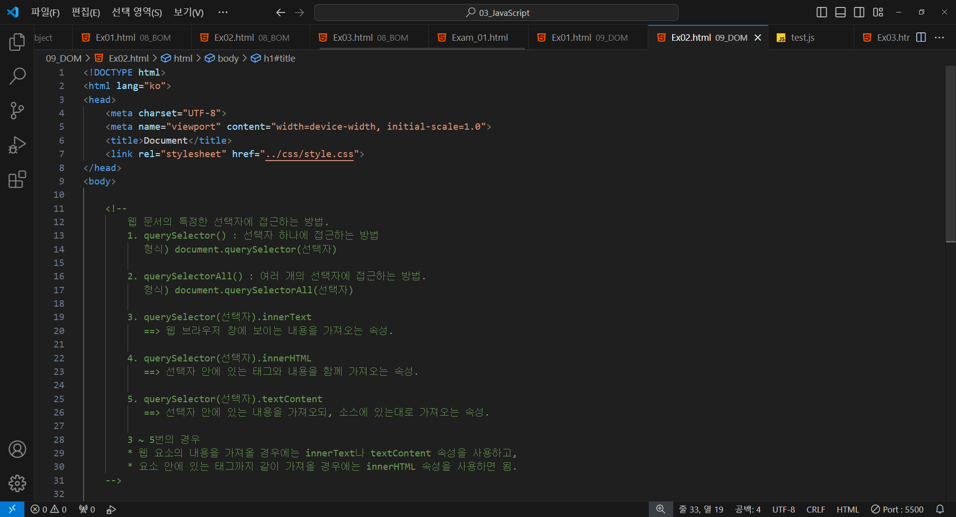 4. querySelector(선택자).innerHTML