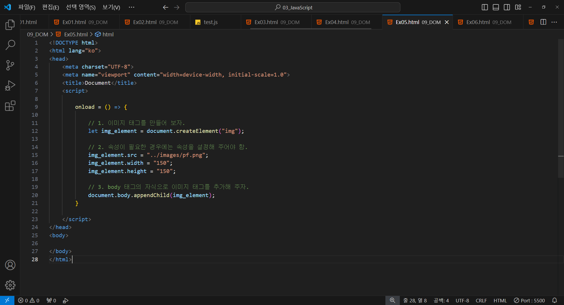 // 3. body 태그의 자식으로 이미지 태그를 추가해 주자.