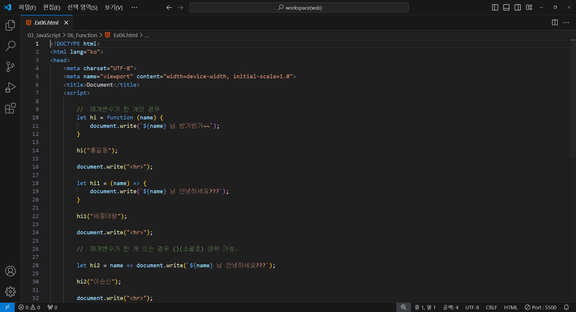 let hi2 = name => document.write(`${name} 님 안녕하세요???`);