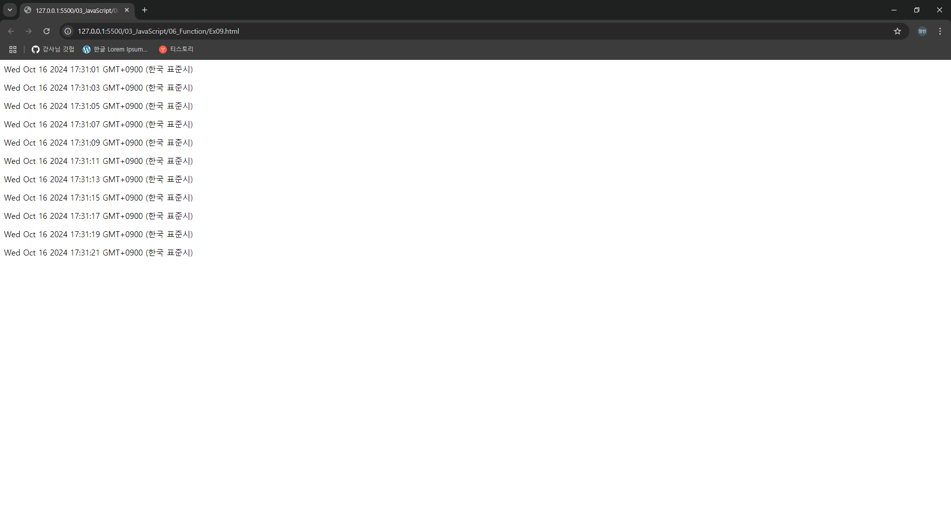 - setInterval() 내장 함수는 함수가 지속적을 실행이 되므로