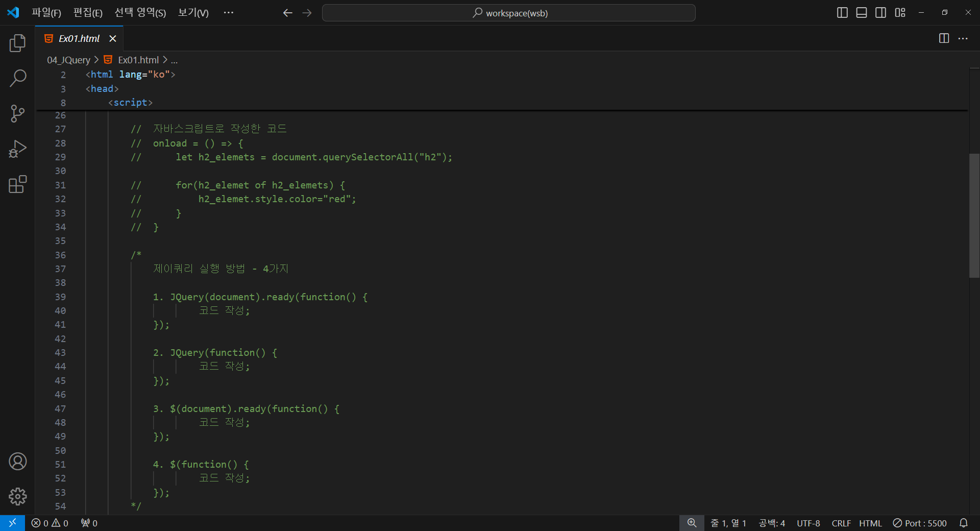 제이쿼리 실행 방법 - 4가지