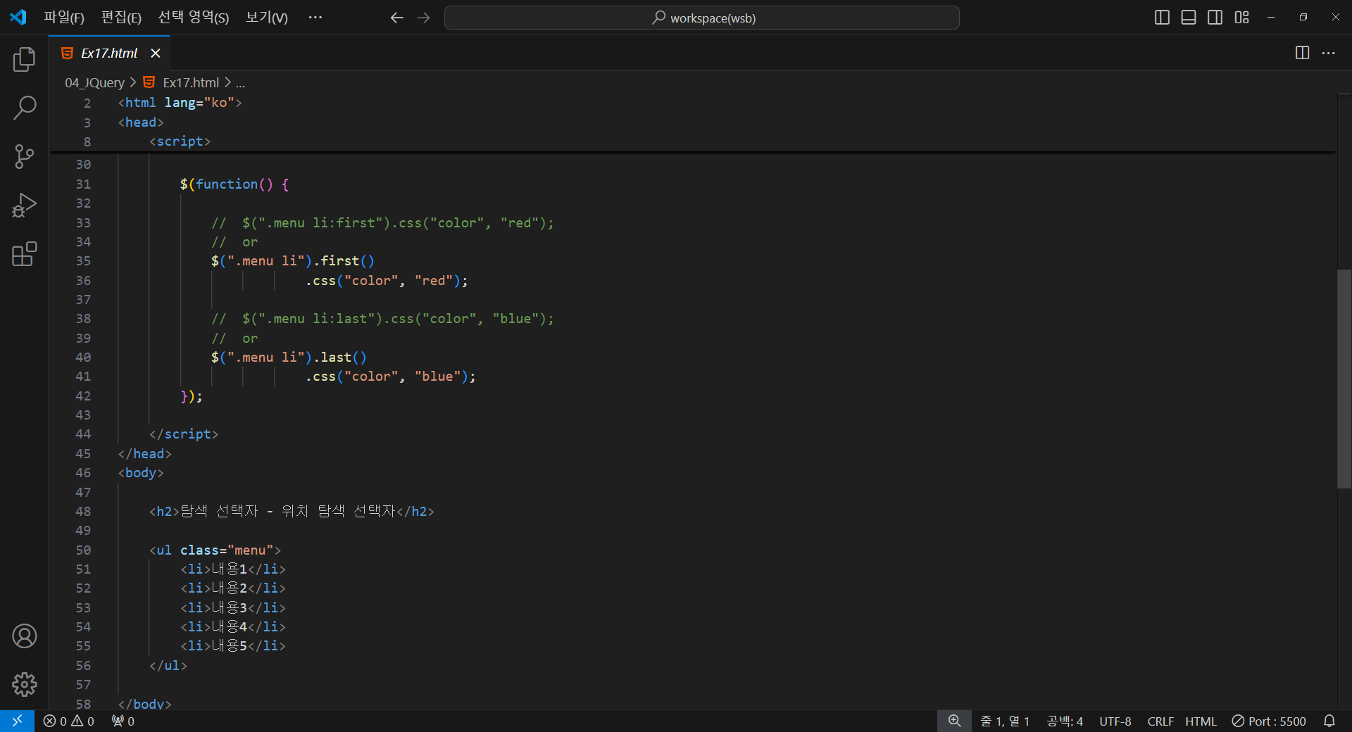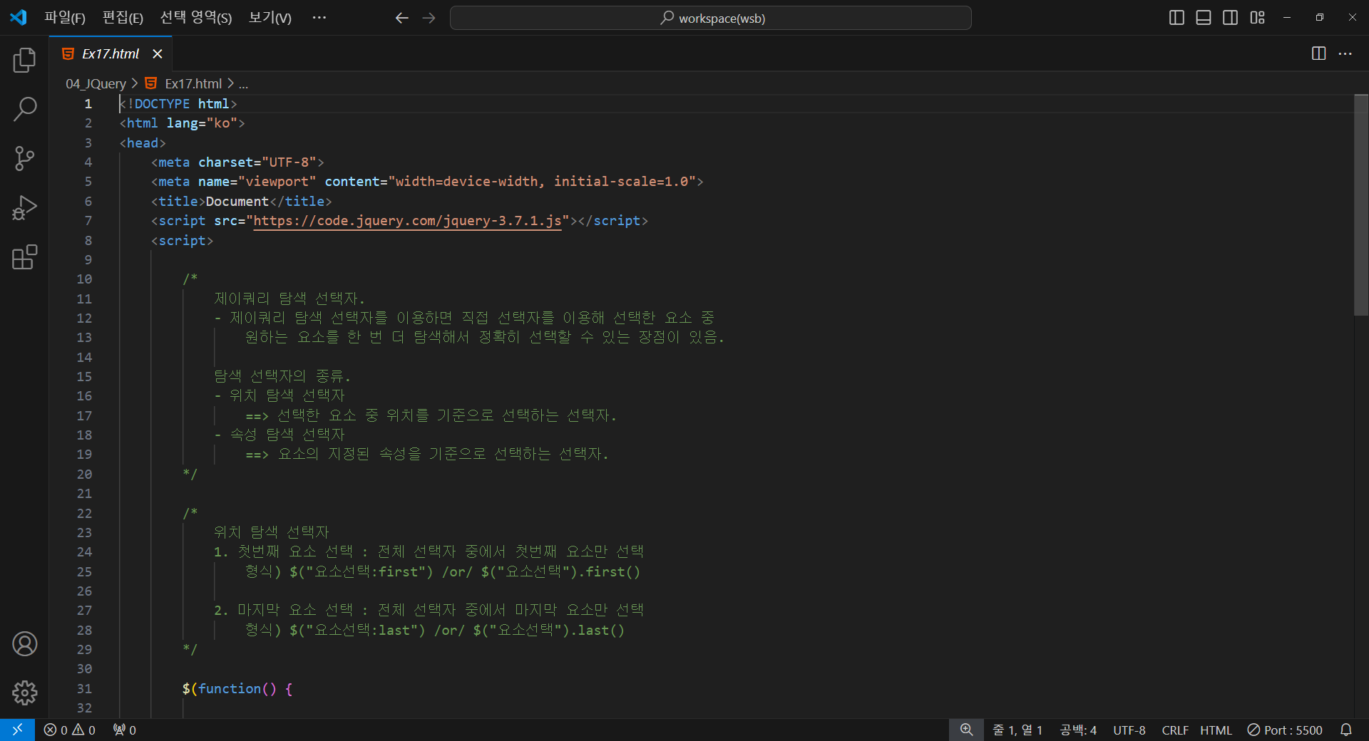 제이쿼리 탐색 선택자.