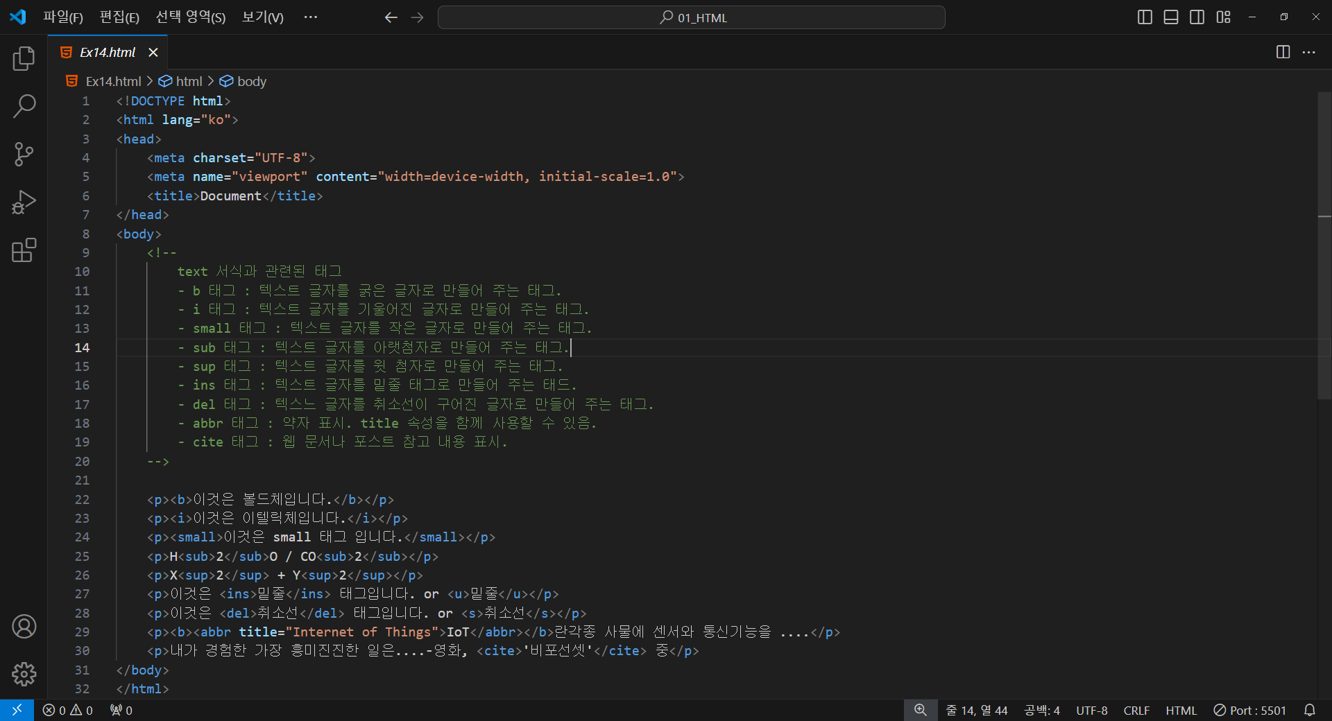 - sub 태그 : 텍스트 글자를 아랫첨자로 만들어 주는 태그.