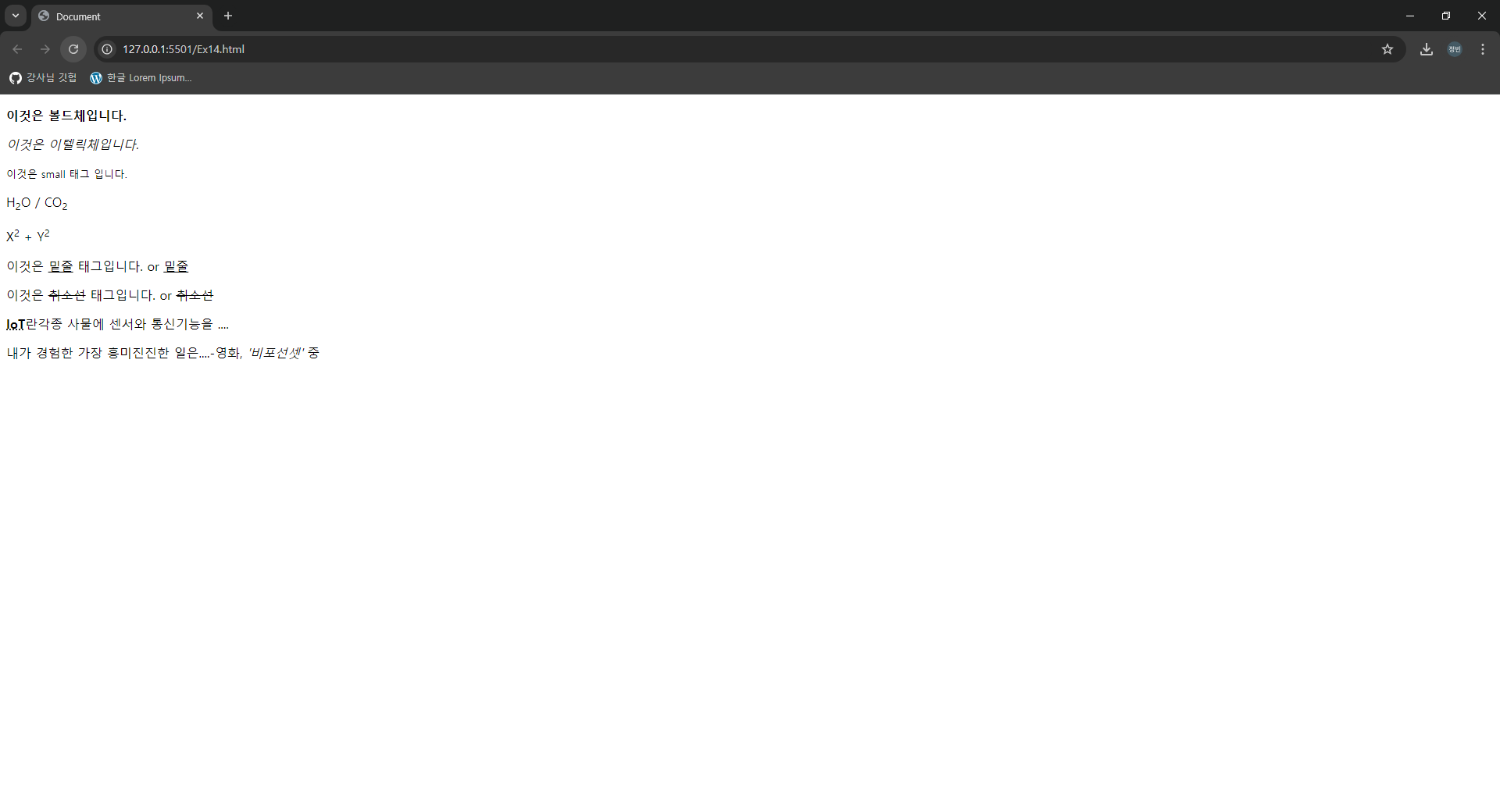 - i 태그 : 텍스트 글자를 기울어진 글자로 만들어 주는 태그.