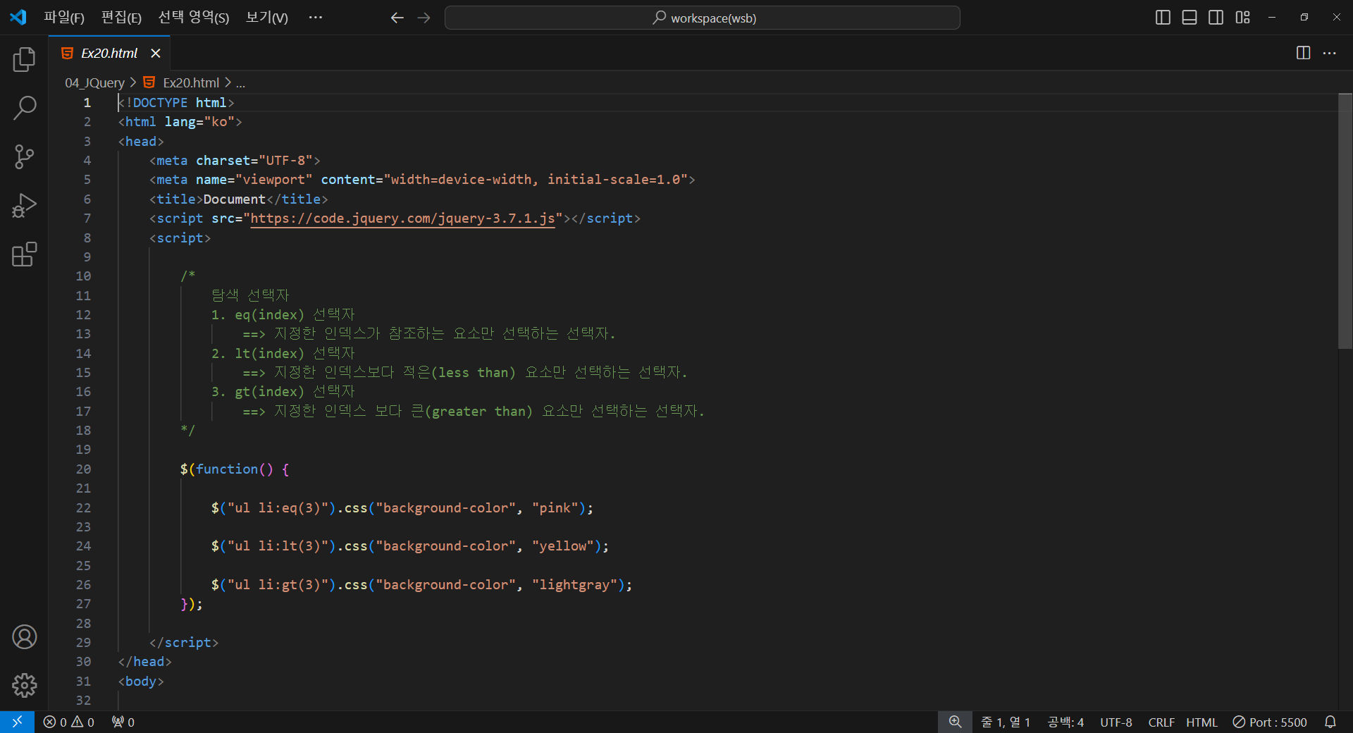 2. lt(index) 선택자