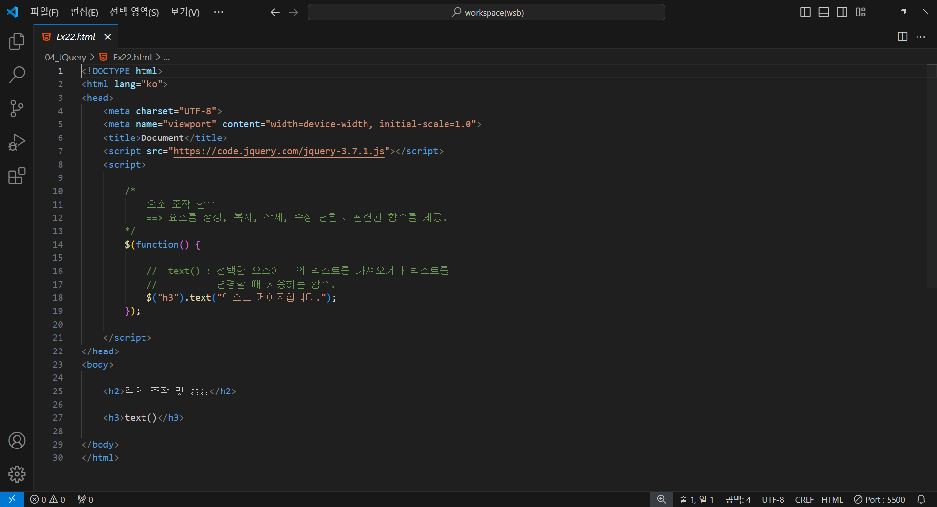 // text() : 선택한 요소에 내의 텍스트를 가져오거나 텍스트를