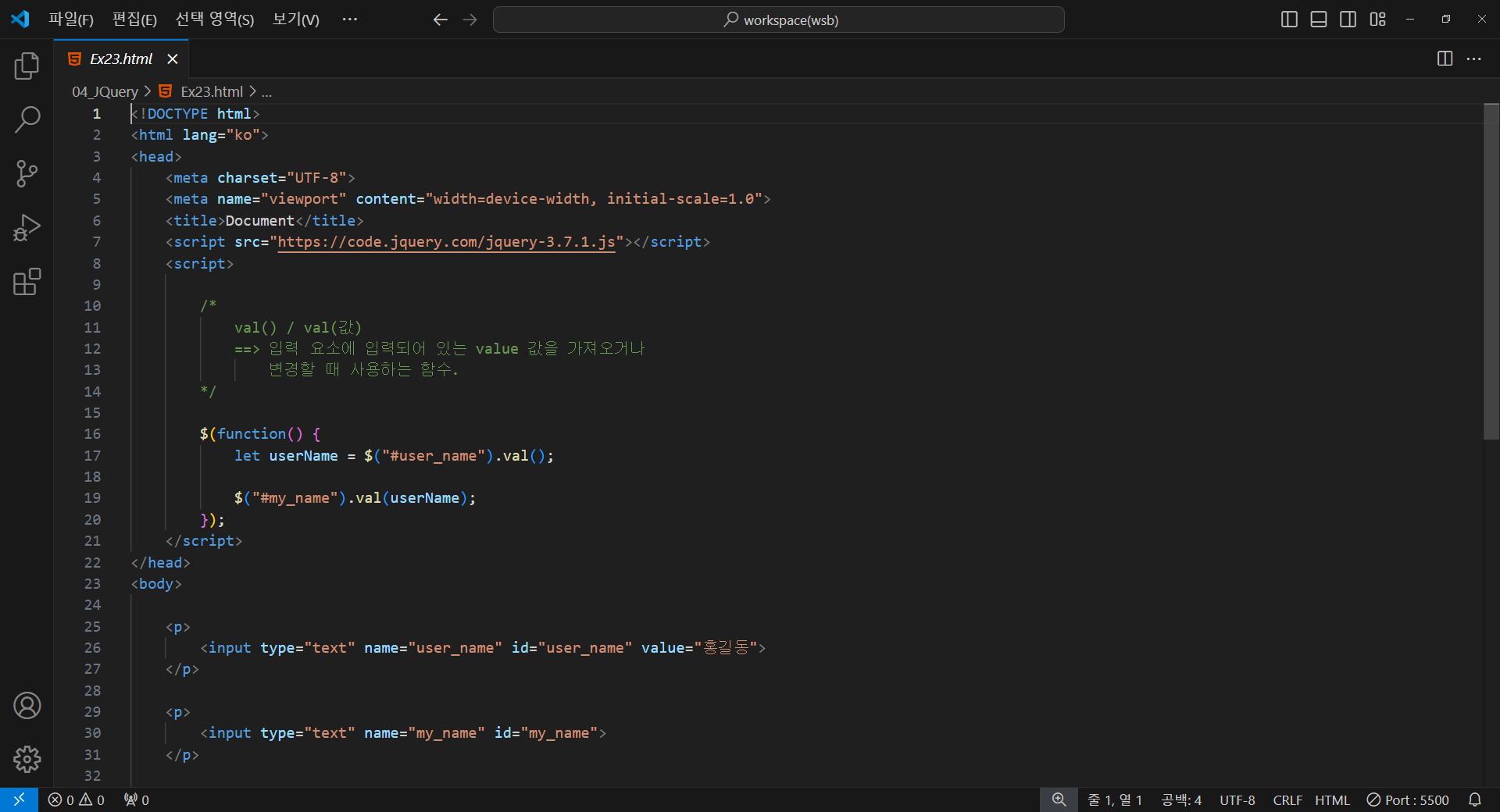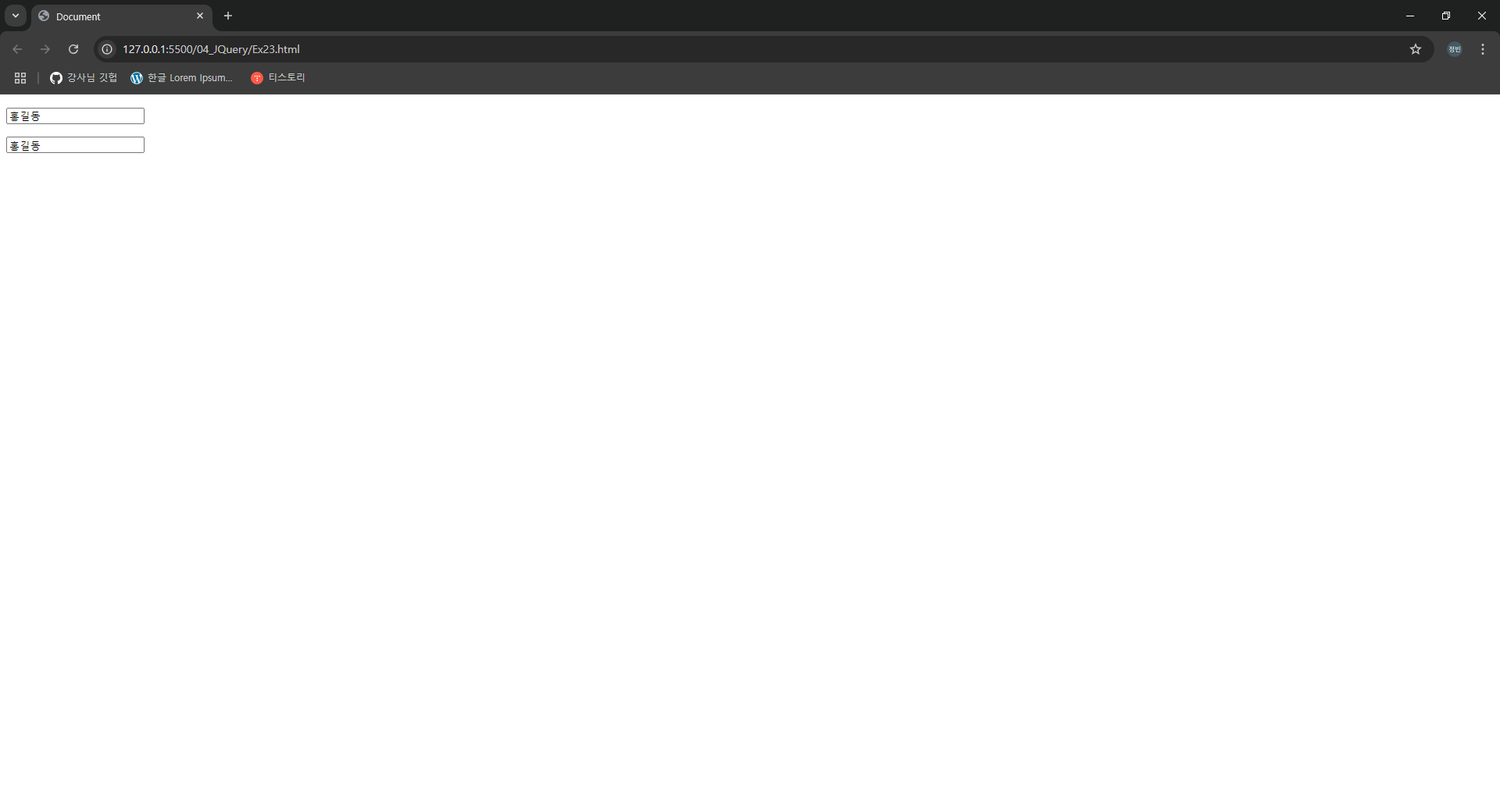 <input type="text" name="user_name" id="user_name" value="홍길동">