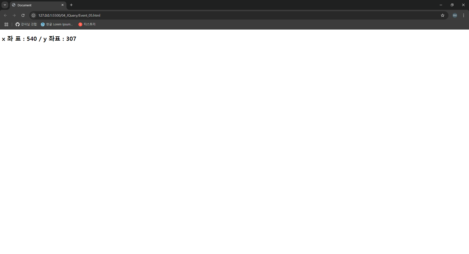 $("h2").text("x 좌 표 : " +x+" / y 좌표 : "+y);