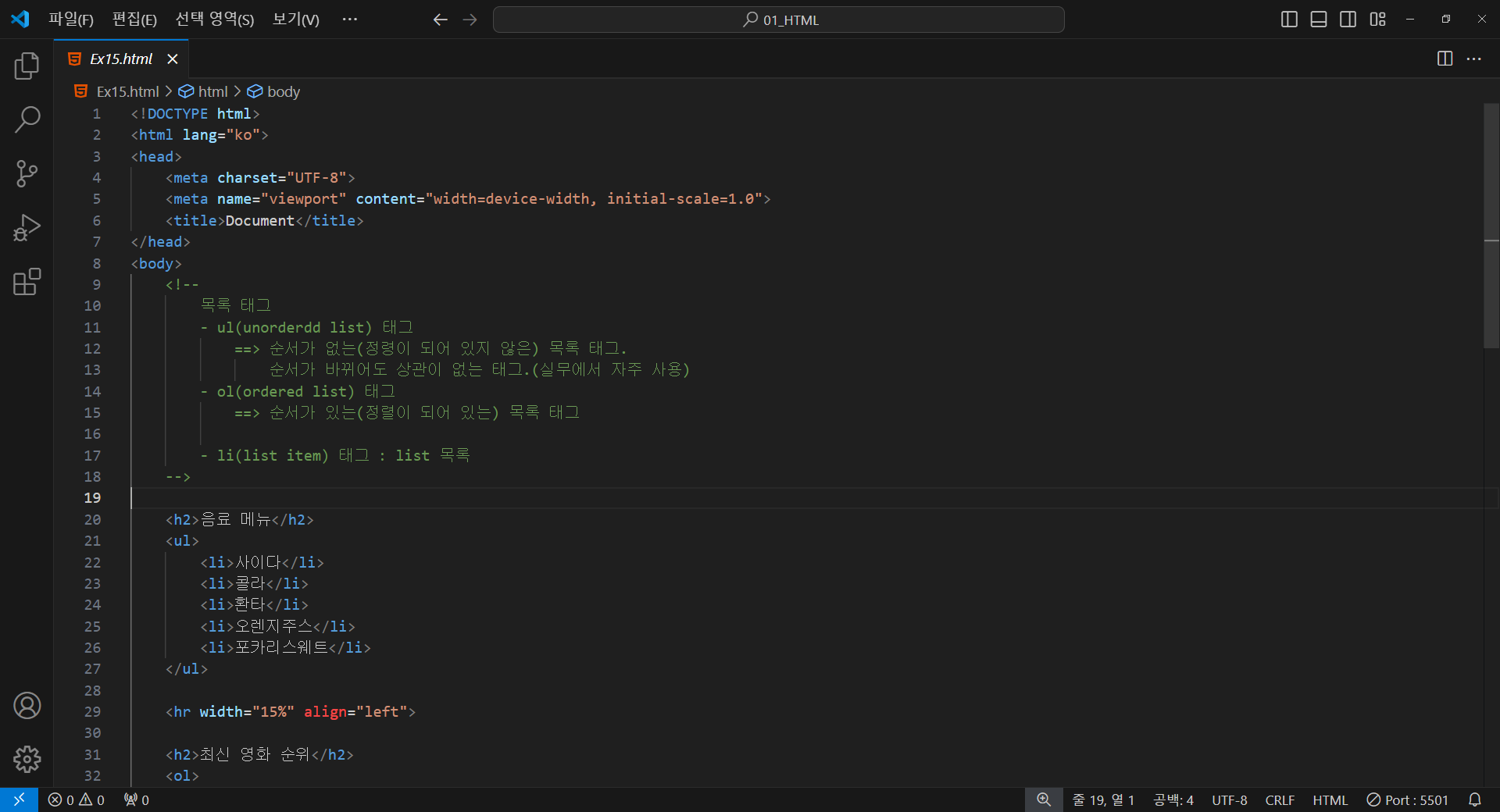 - ul(unorderdd list) 태그