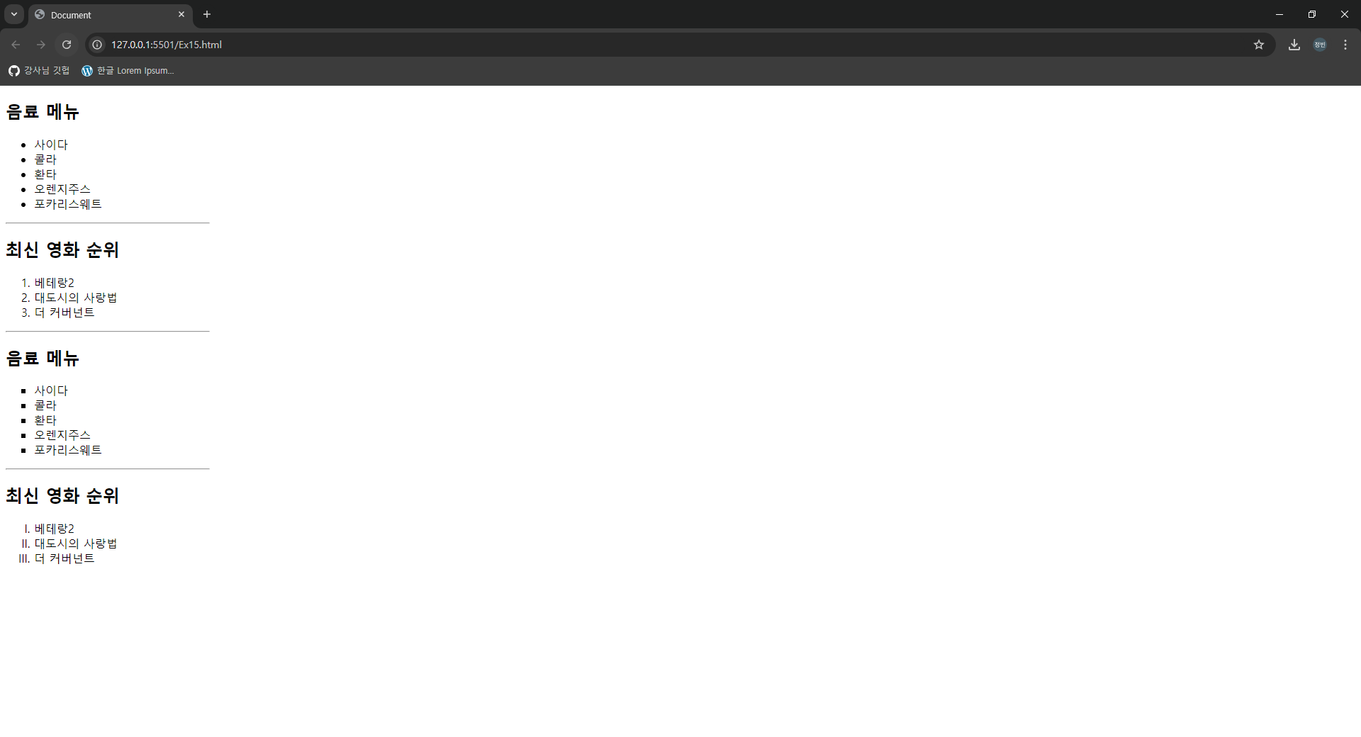 - li(list item) 태그 : list 목록