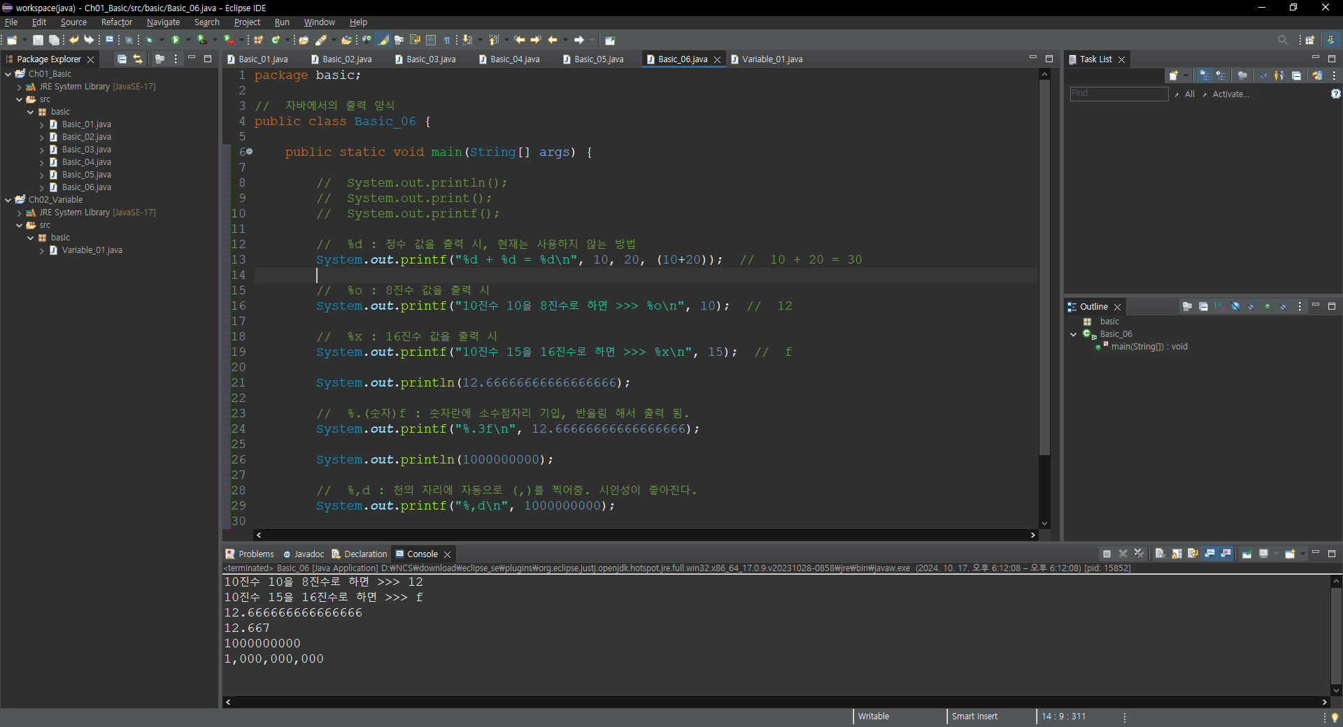 System.out.printf("10진수 10을 8진수로 하면 >>> %o\n", 10); // 12