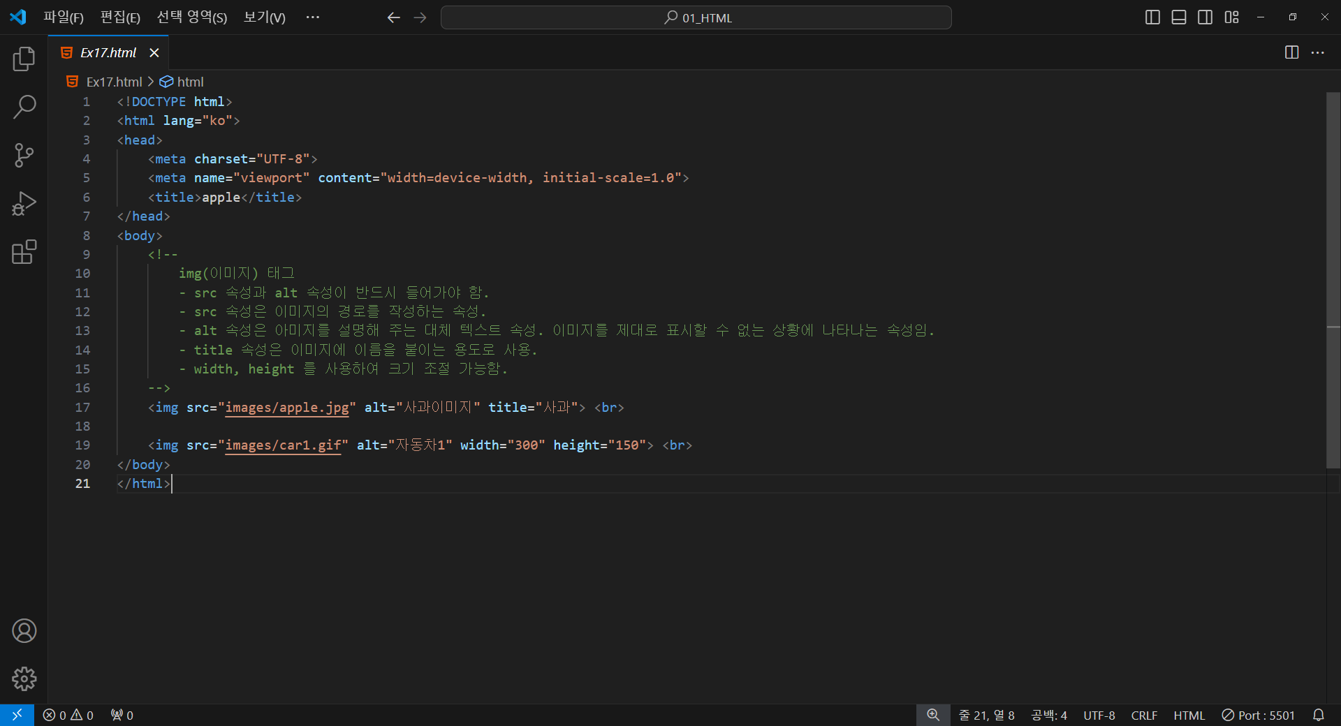 <img src="images/apple.jpg" alt="사과이미지" title="사과"> <br>