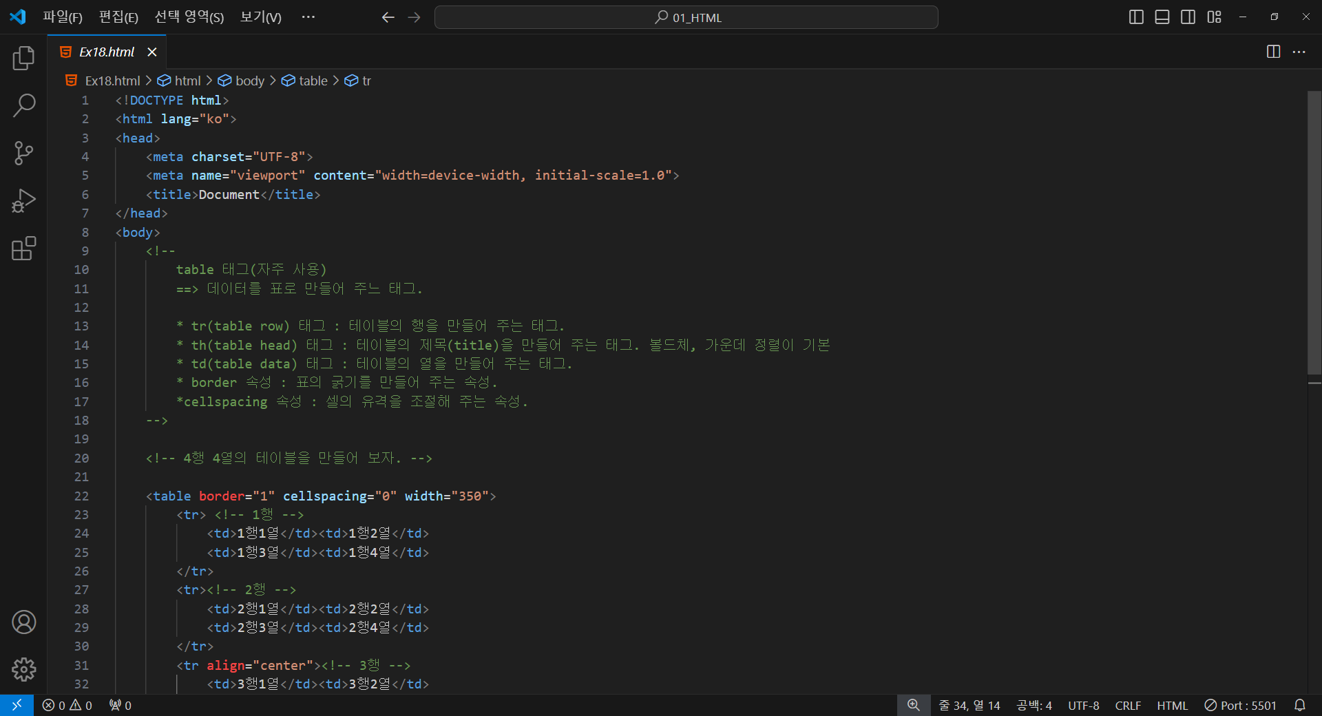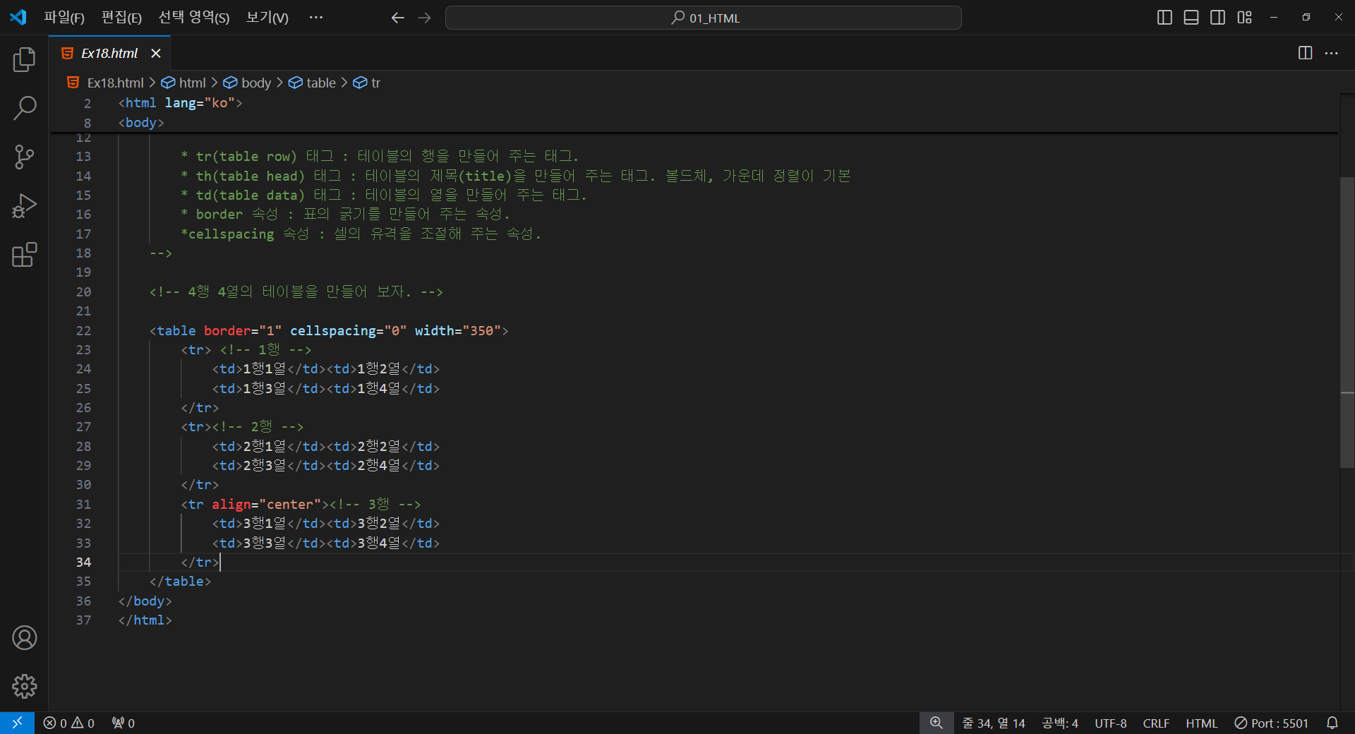 * tr(table row) 태그 : 테이블의 행을 만들어 주는 태그.