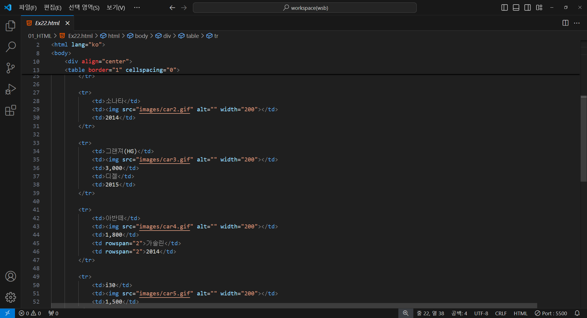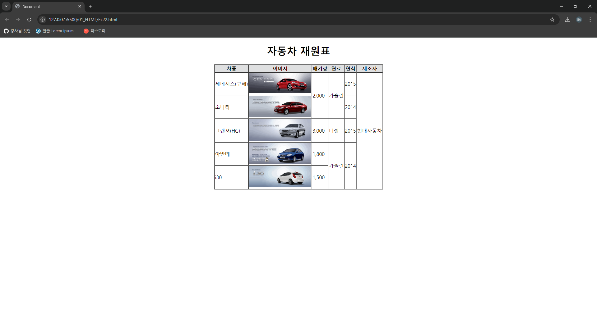 <h1>자동차 재원표</h1>