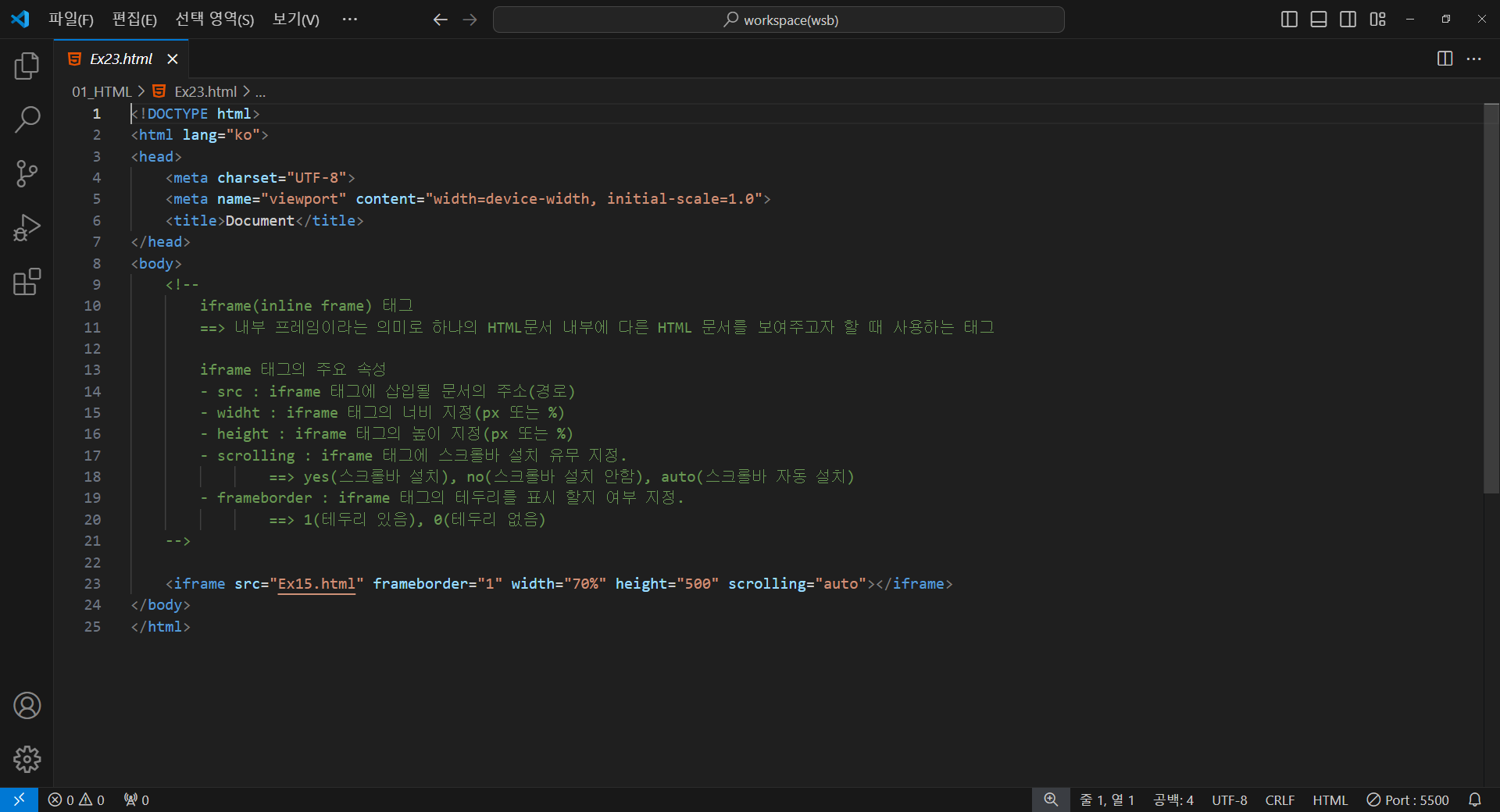- src : iframe 태그에 삽입될 문서의 주소(경로)