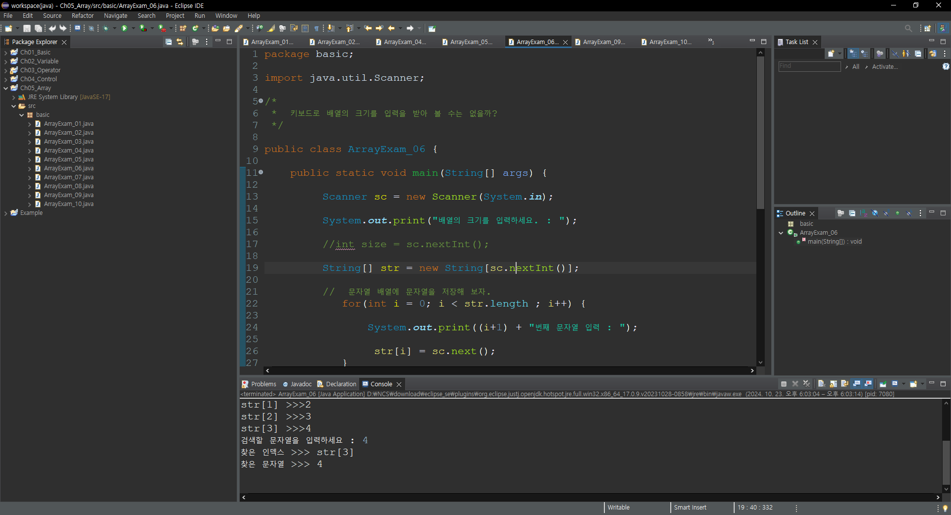 * 키보드로 배열의 크기를 입력을 받아 볼 수는 없을까?