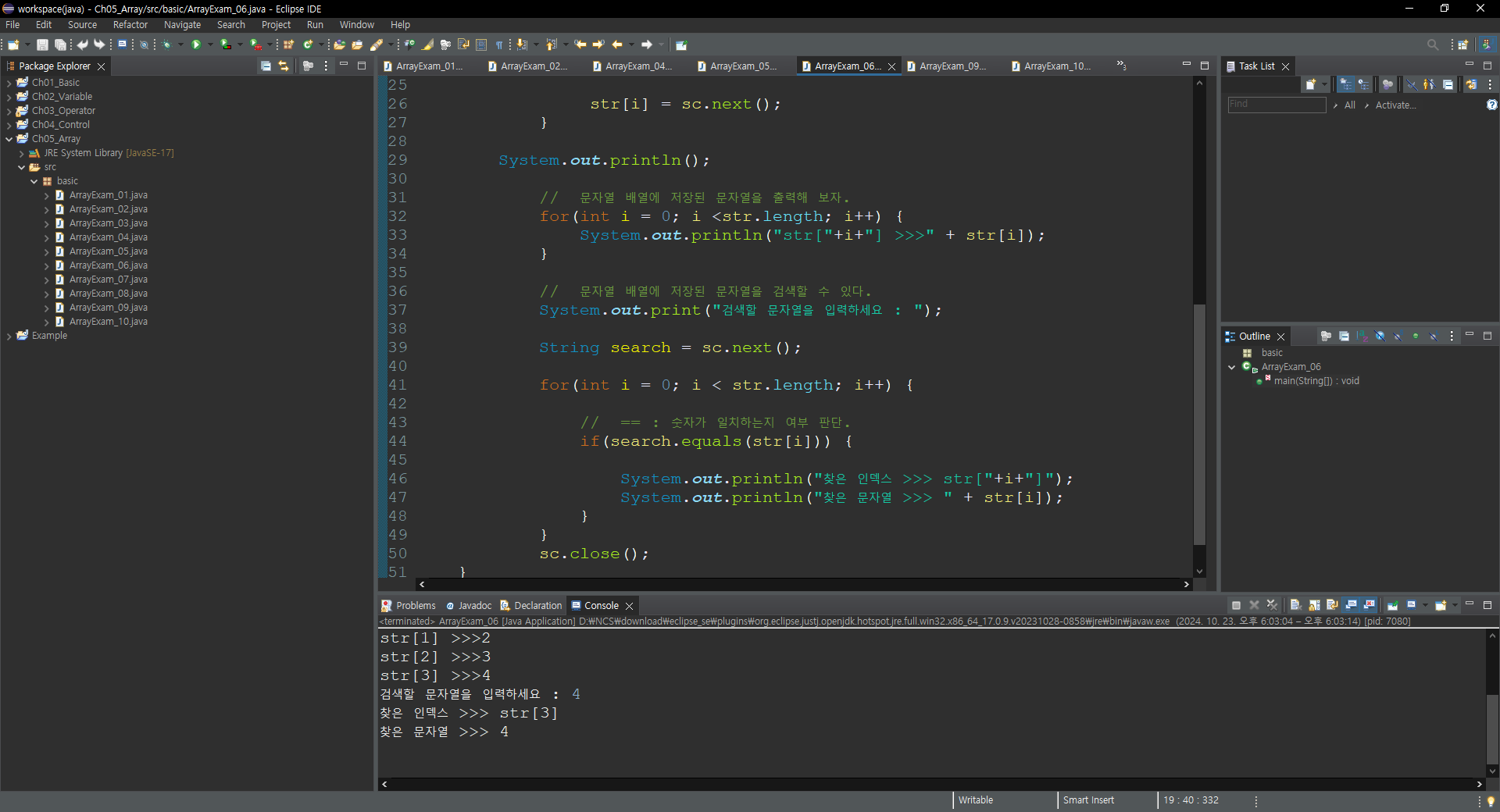 System.out.println("찾은 인덱스 >>> str["+i+"]");