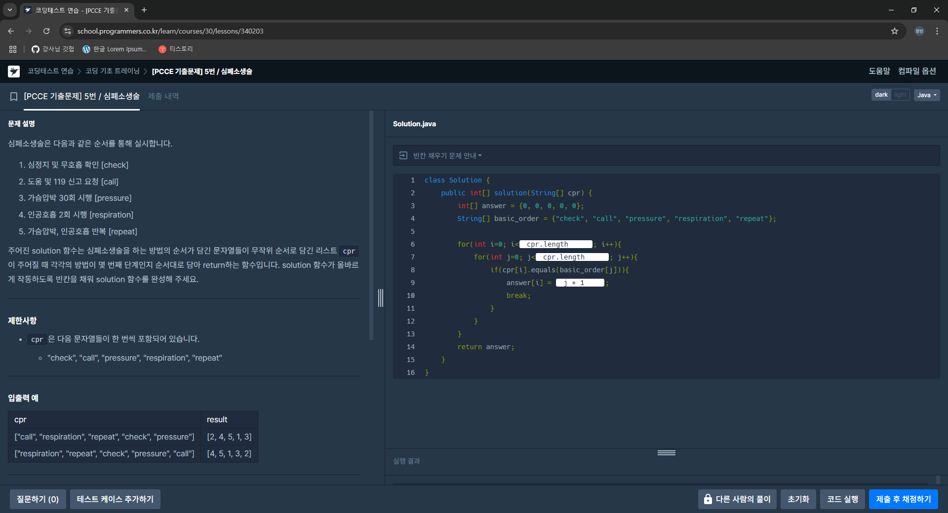 | Java_[PCCE 기출문제] 4번 / 병과분류 (0) | 2024.10.24 |