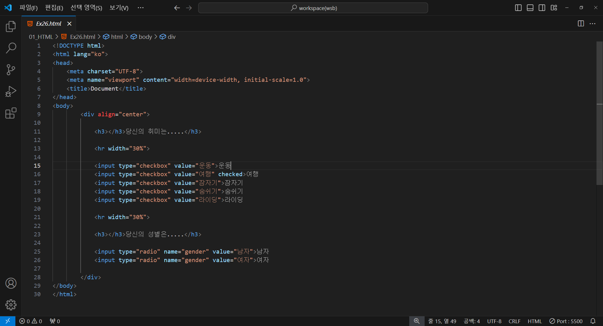 <input type="checkbox" value="숨쉬기">숨쉬기
