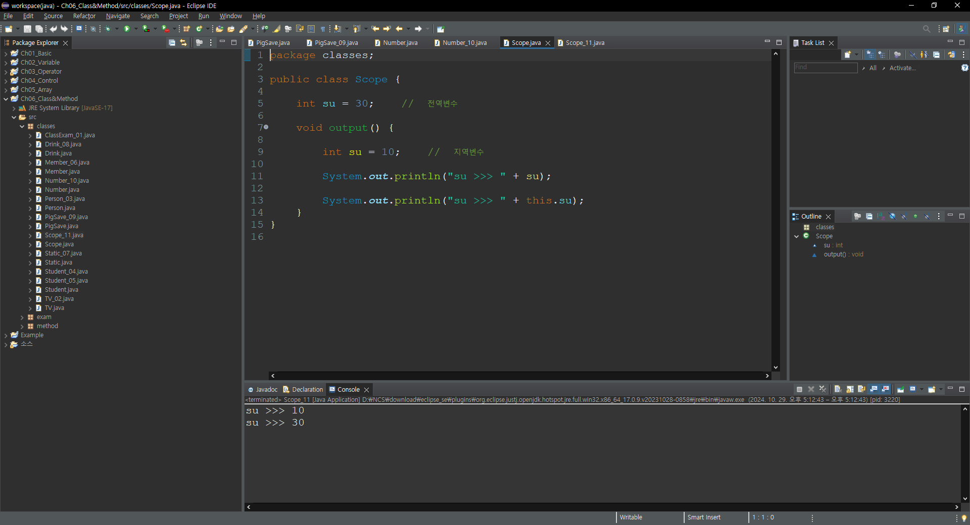 int su = 10; // 지역변수
