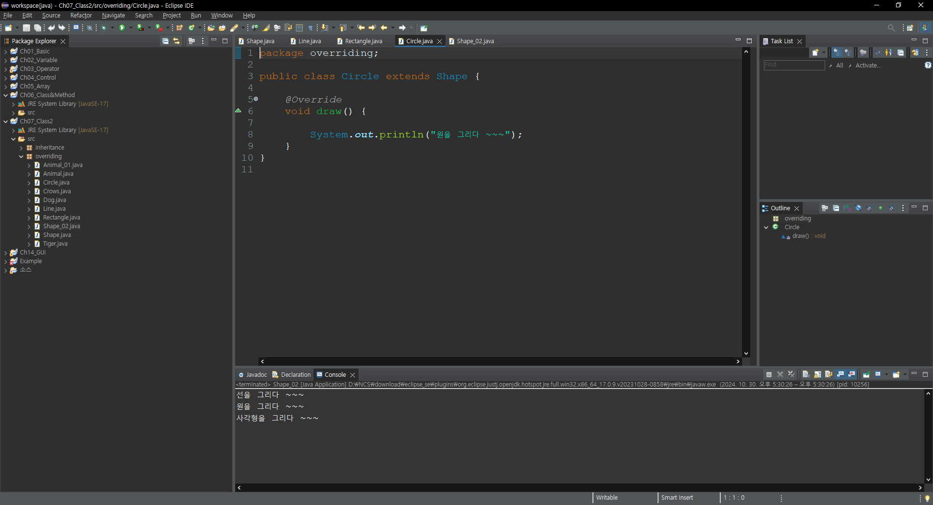 System.out.println("원을 그리다 ~~~");
