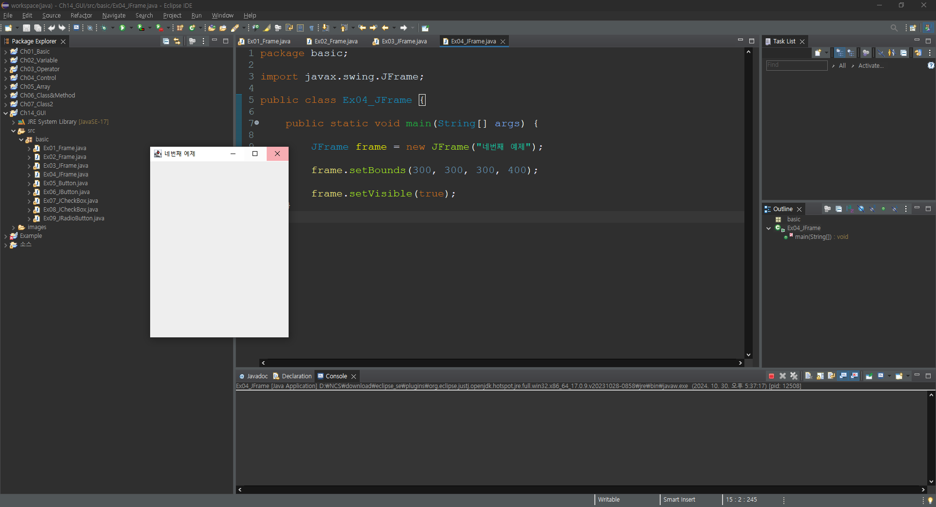 JFrame frame = new JFrame("네번째 예제");