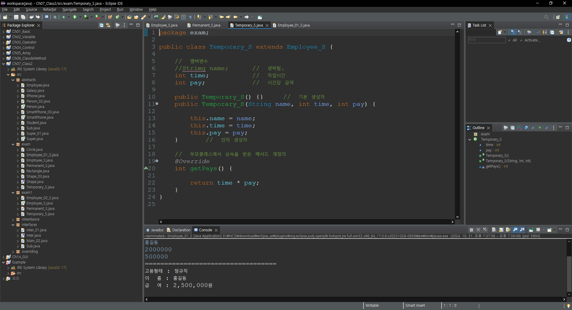 System.out.println("고용형태 : 임시직");