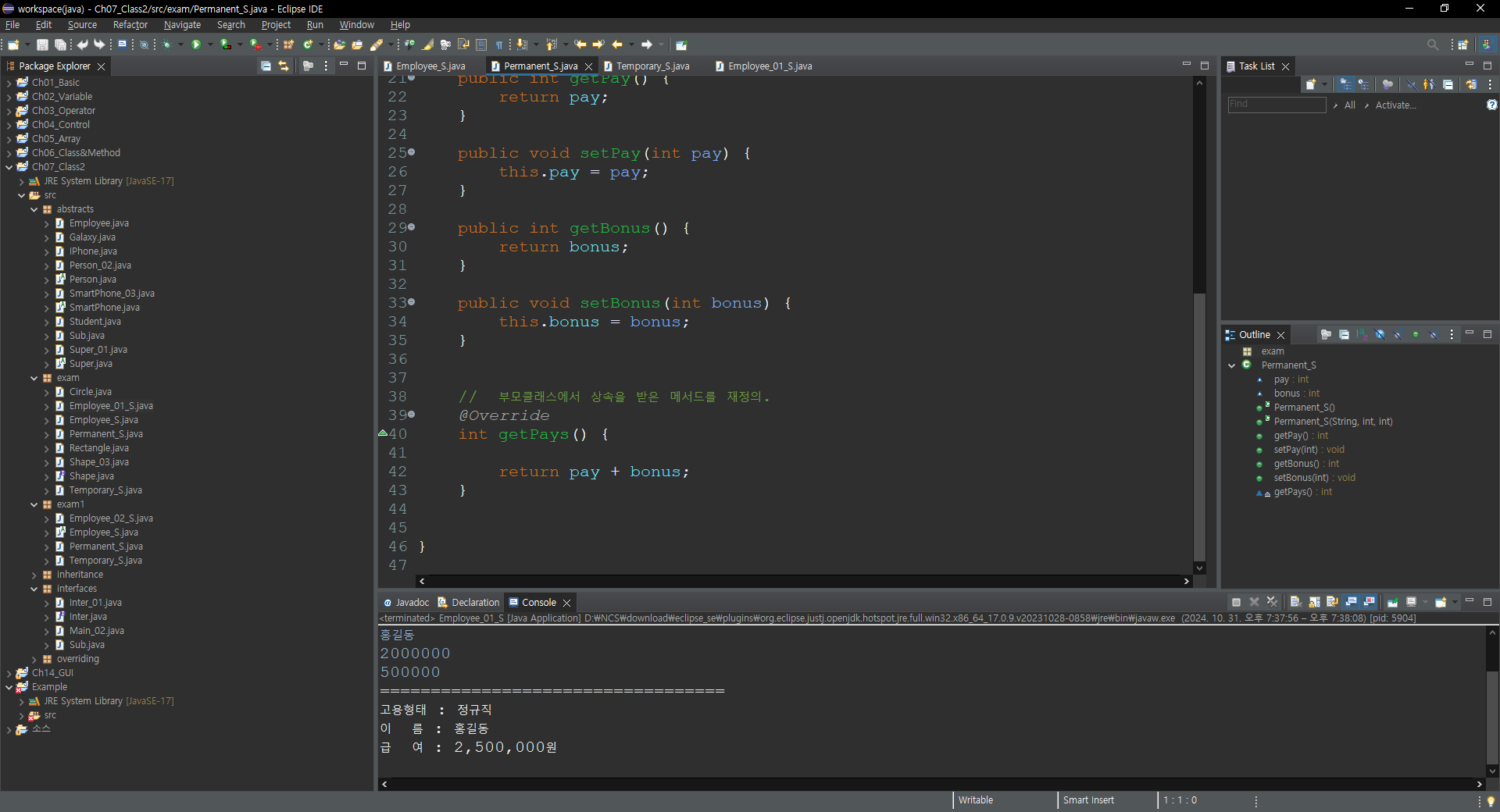 System.out.printf("급 여 : %,d원\n", permanent_S.getPays());