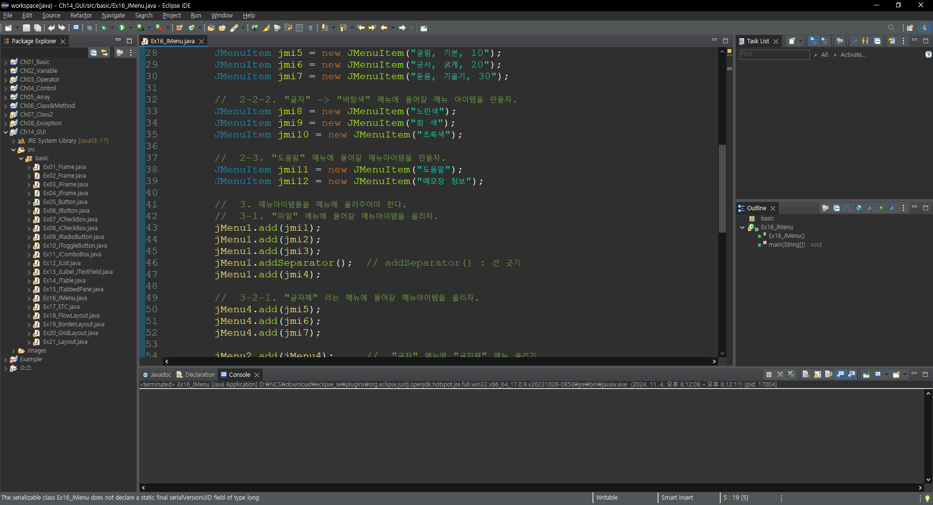 JMenu jMenu5 = new JMenu("바탕색"); // 메뉴 안의 메뉴