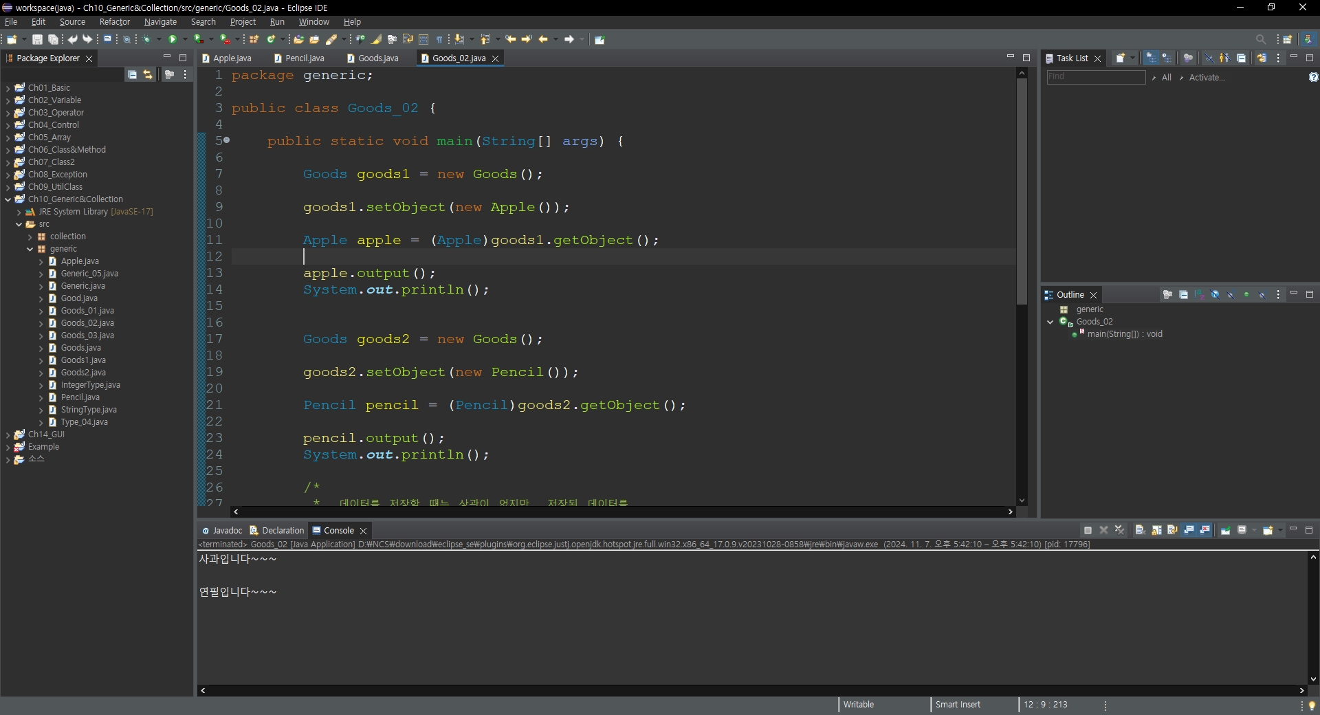 * 이러한 문제점을 해결하는 것이 바로 제네릭(generic)임.