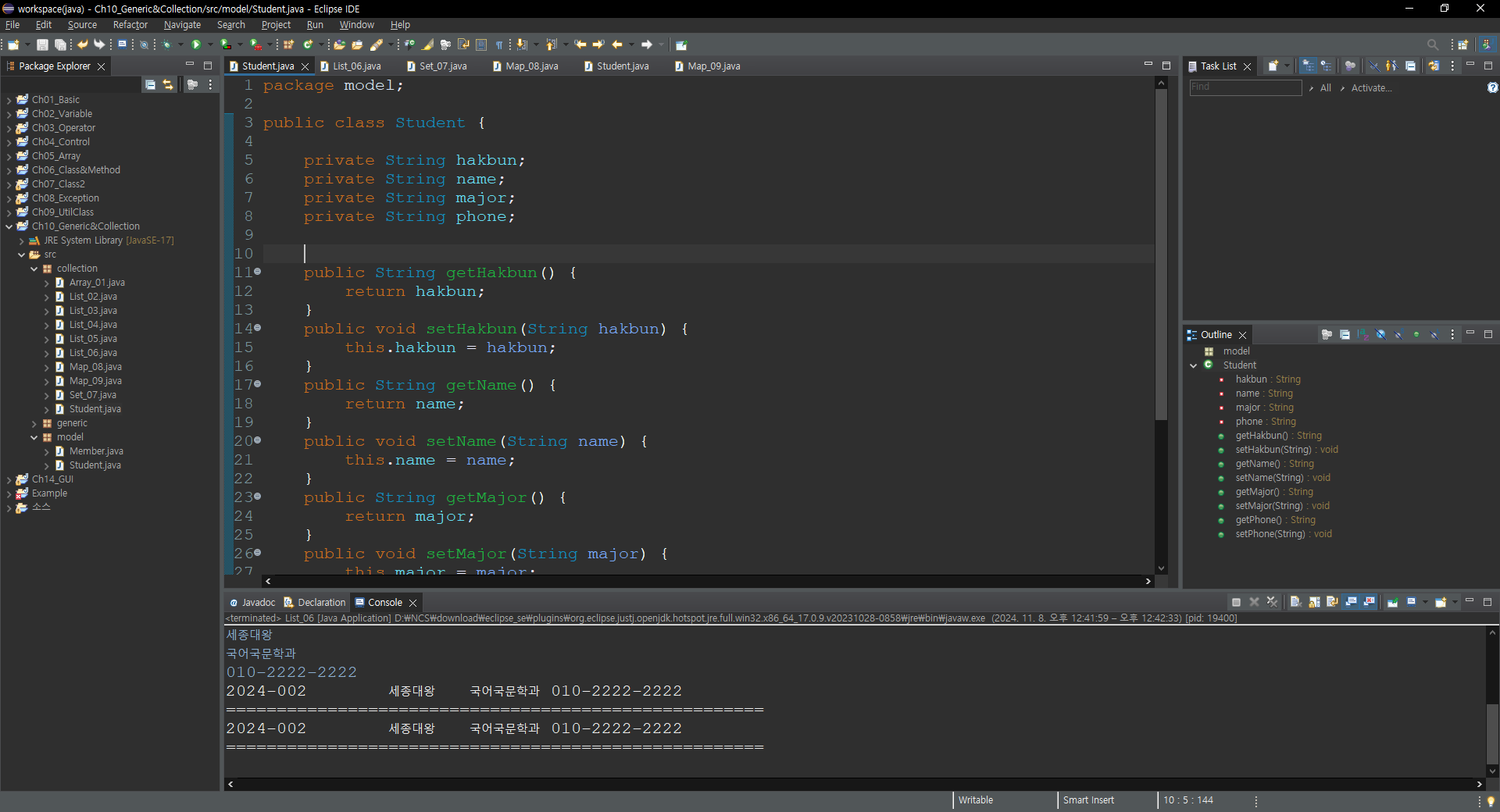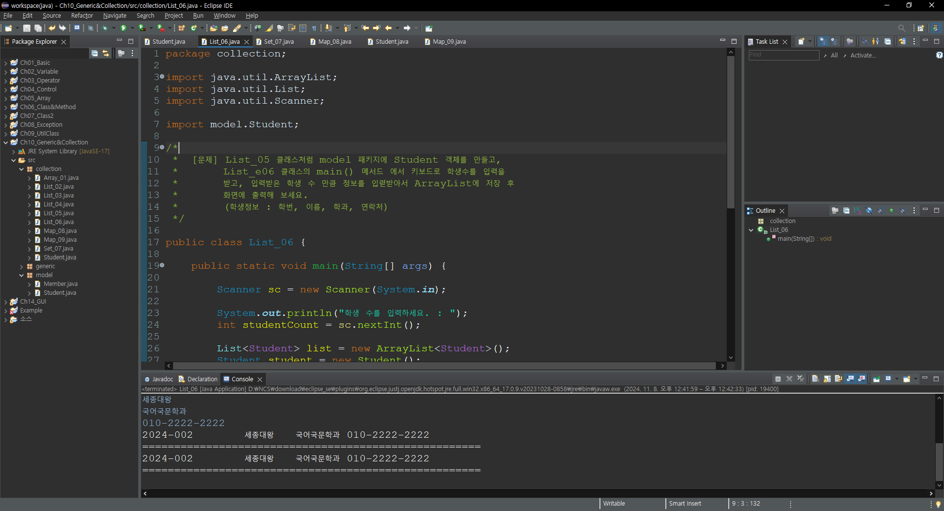 * [문제] List_05 클래스처럼 model 패키지에 Student 객체를 만들고,
