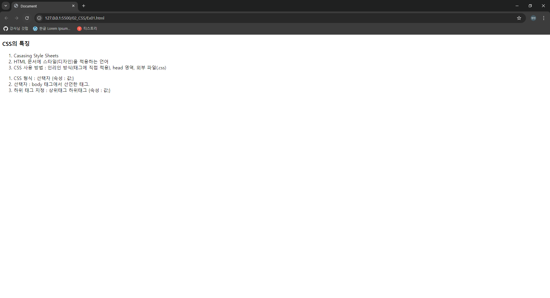 <li>CSS 형식 : 선택자 {속성 : 값;}</li>