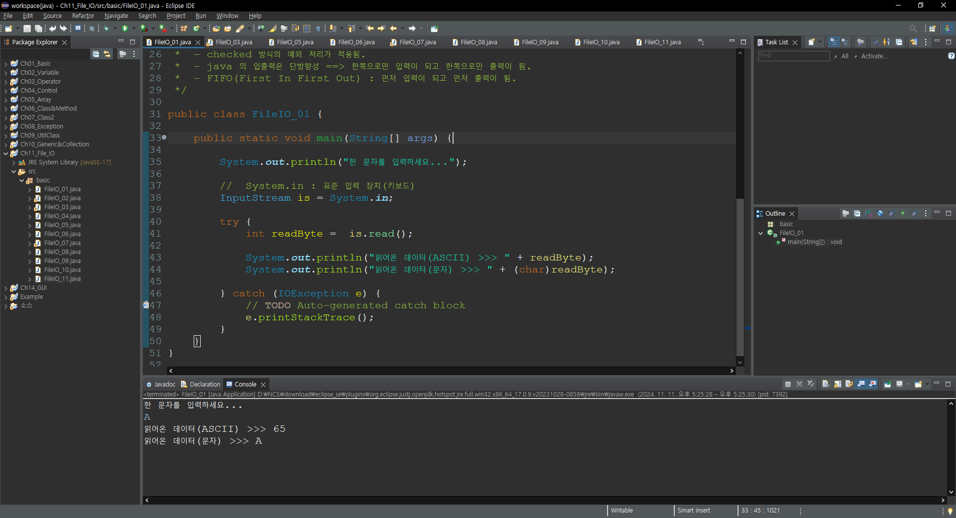 * - java 입출력 관련 클래스 : java.io 패키지에 존재함.