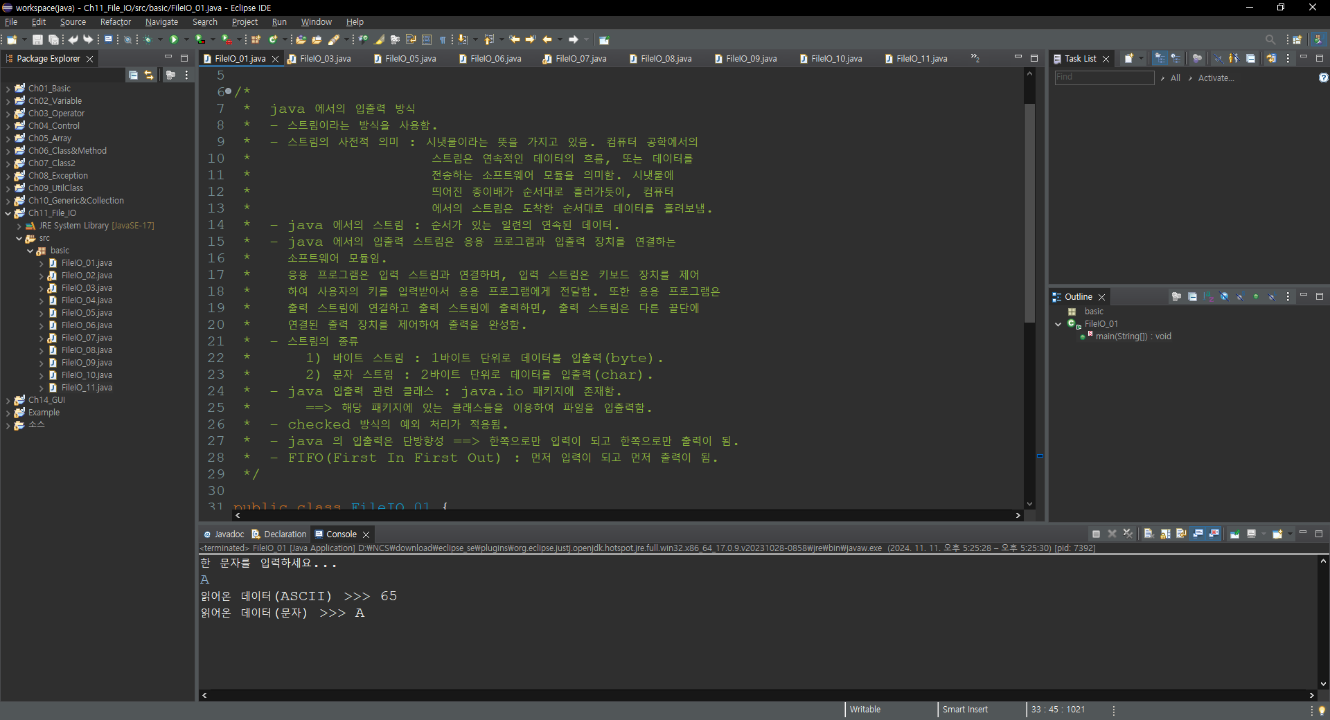 * ==> 해당 패키지에 있는 클래스들을 이용하여 파일을 입출력함.