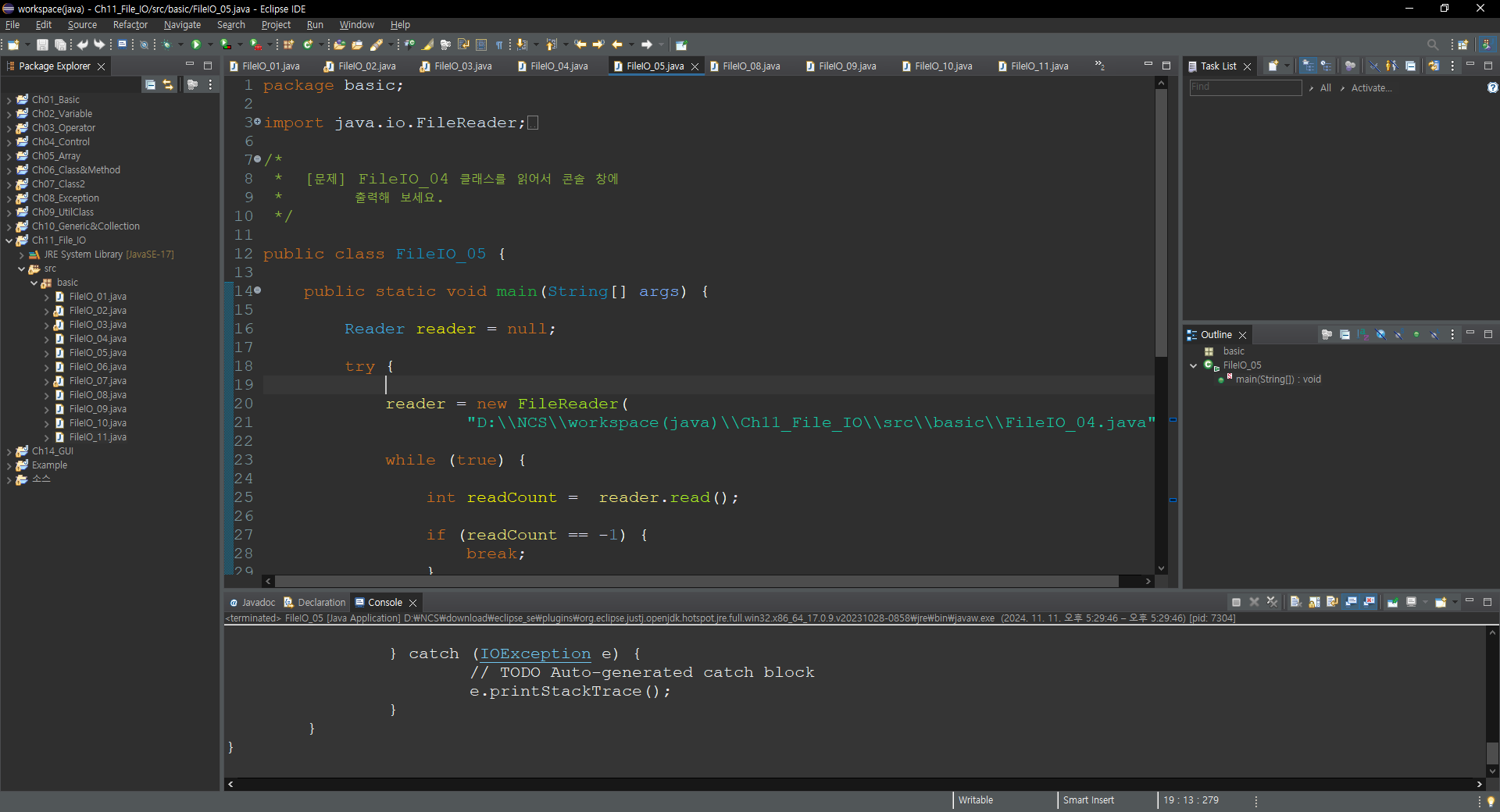 * [문제] FileIO_04 클래스를 읽어서 콘솔 창에