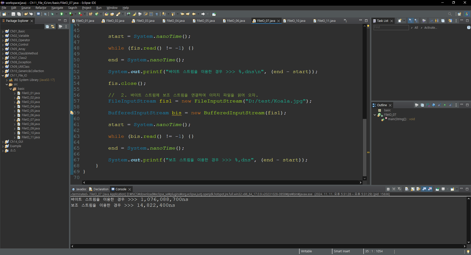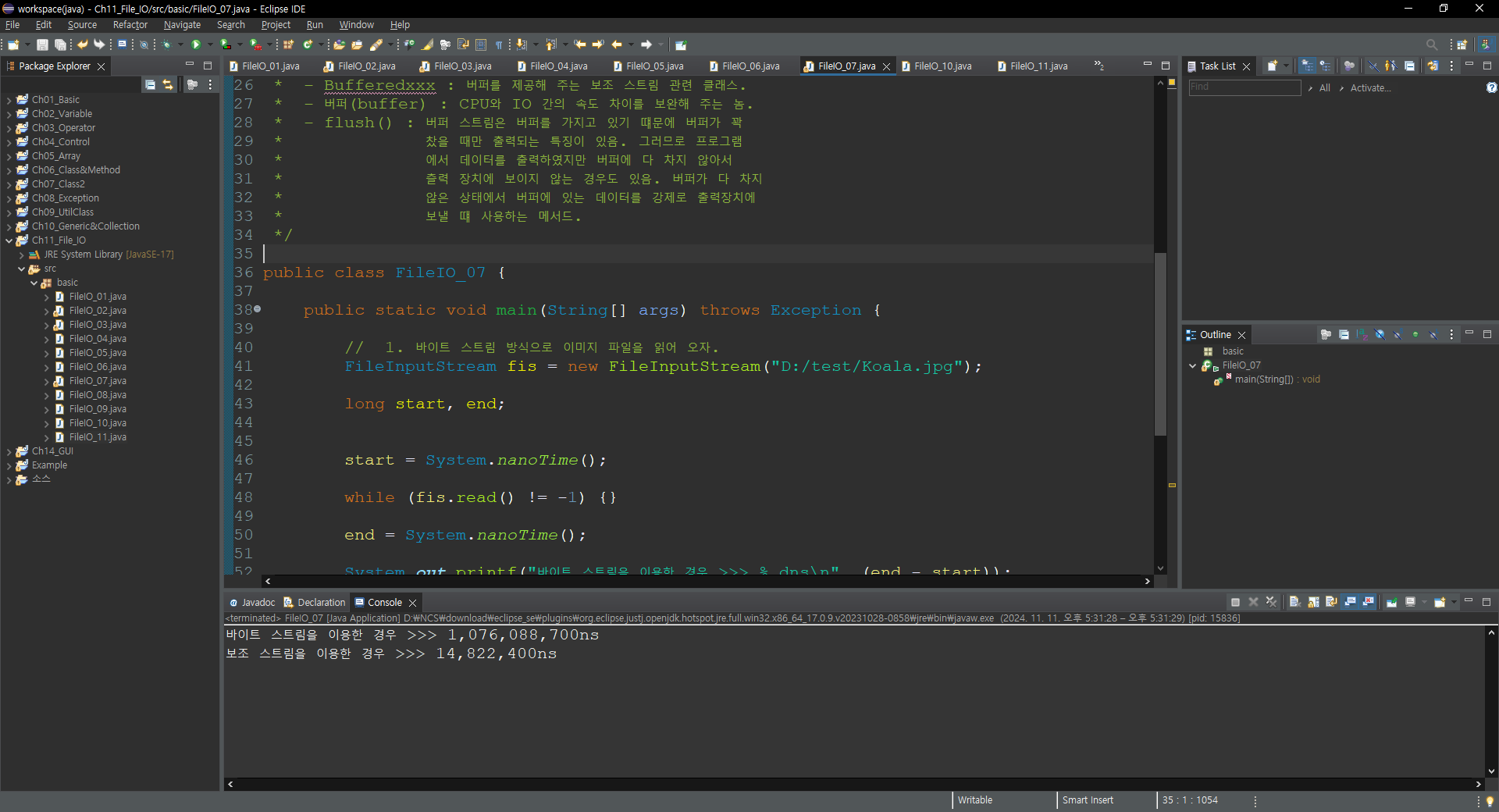 바이트 스트림을 이용한 경우 >>> 1,076,088,700ns