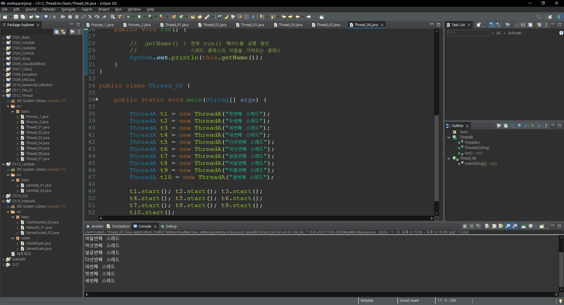 ThreadA t10 = new ThreadA("열번째 스레드");