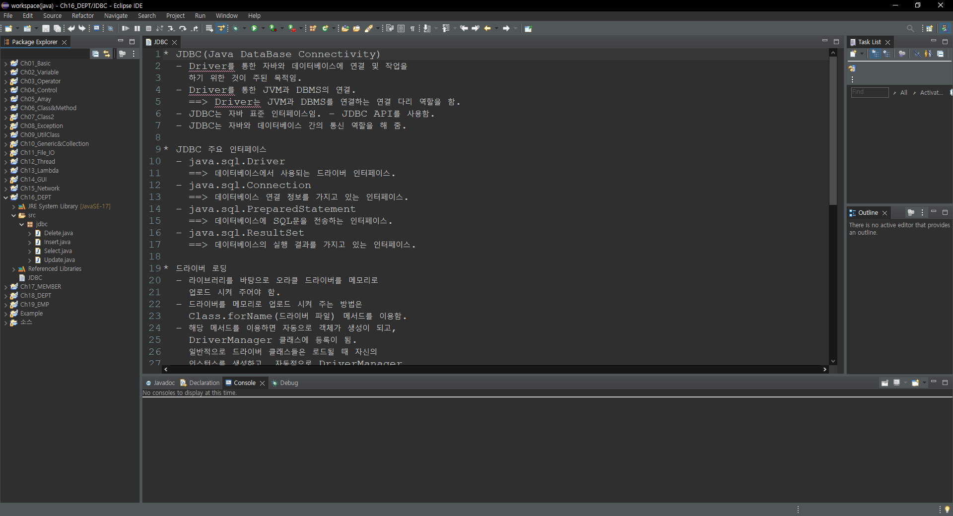 - Driver를 통한 자바와 데이터베이스에 연결 및 작업을