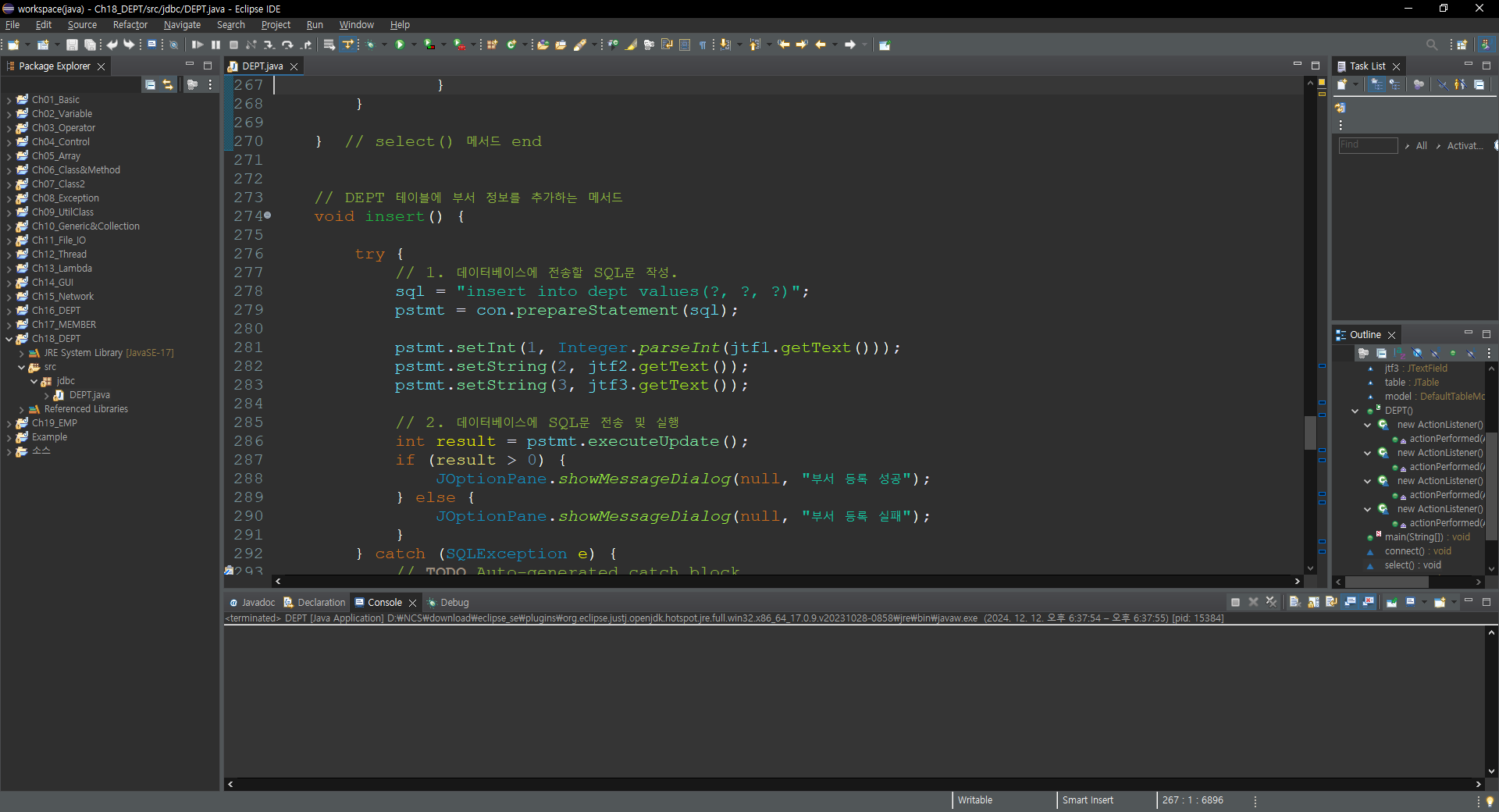// DEPT 테이블에 부서 정보를 추가하는 메서드