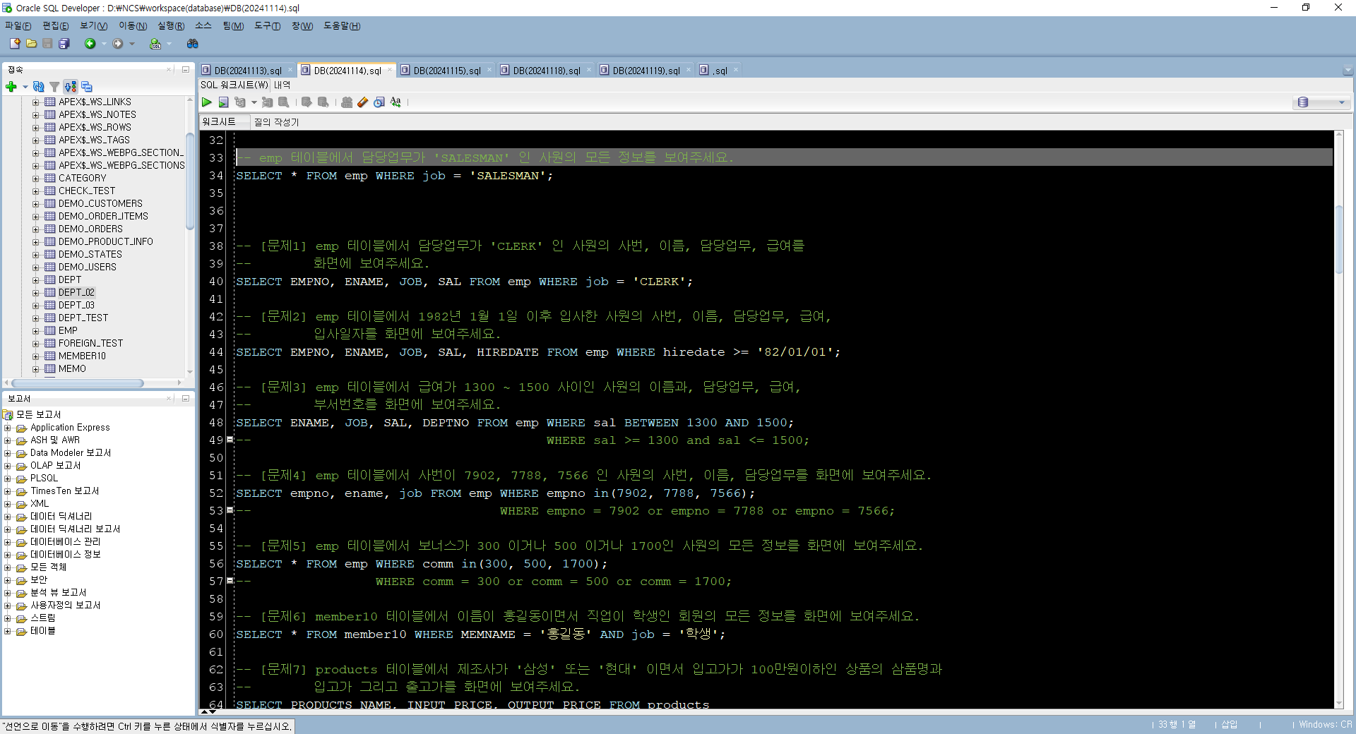 -- emp 테이블에서 담당업무가 'SALESMAN' 인 사원의 모든 정보를 보여주세요.