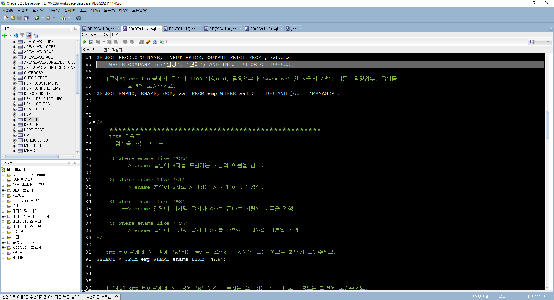 WHERE COMPANY in('삼성', '현대') AND INPUT_PRICE <= 1000000;