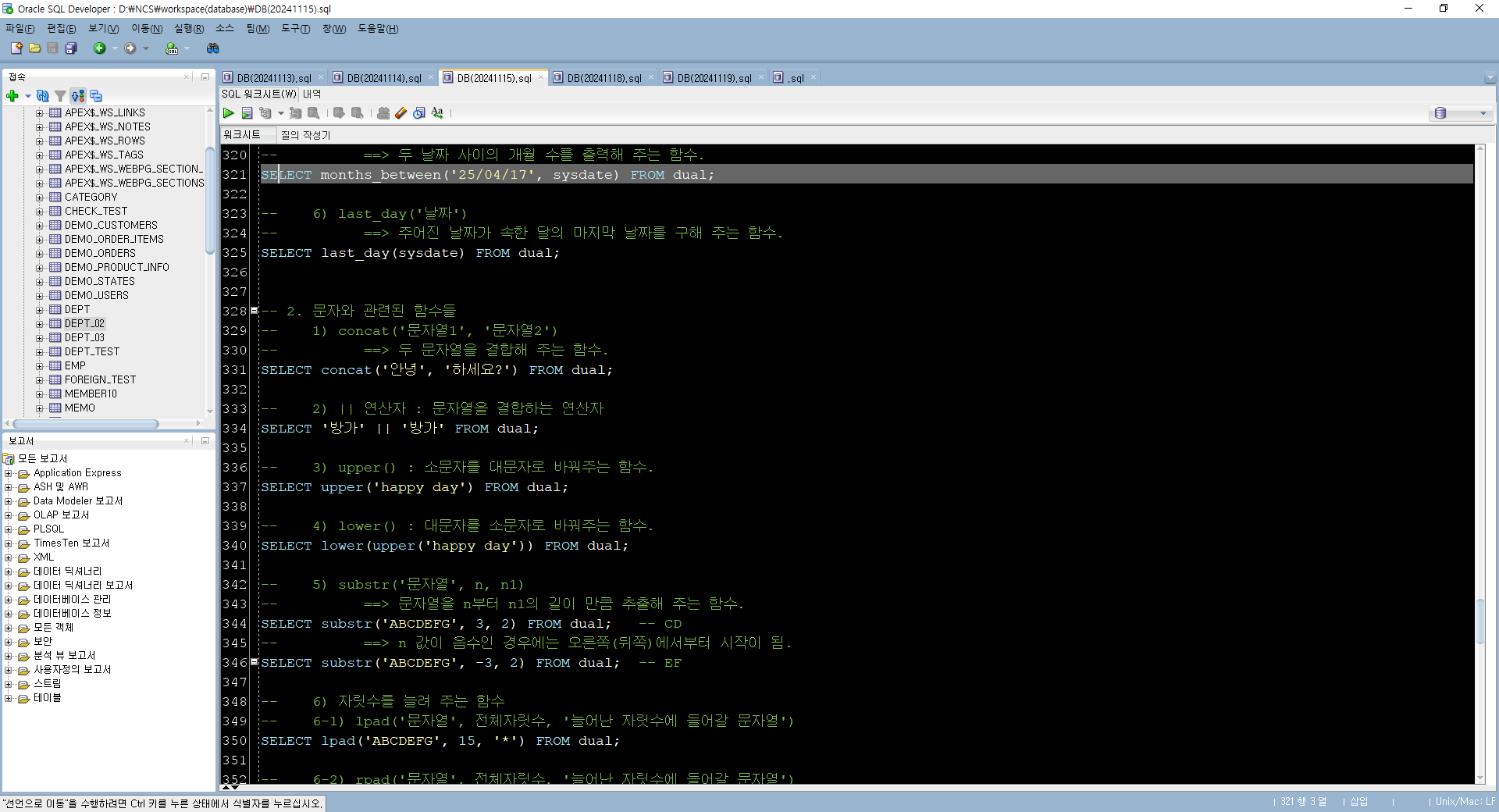 -- ==> 두 날짜 사이의 개월 수를 출력해 주는 함수.