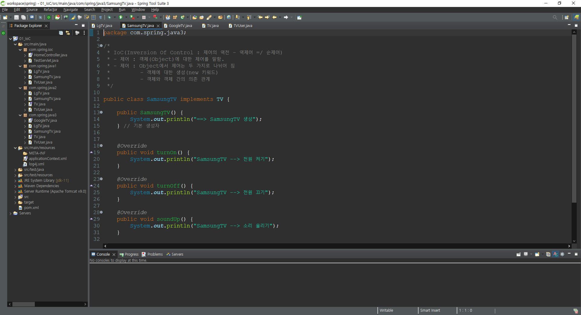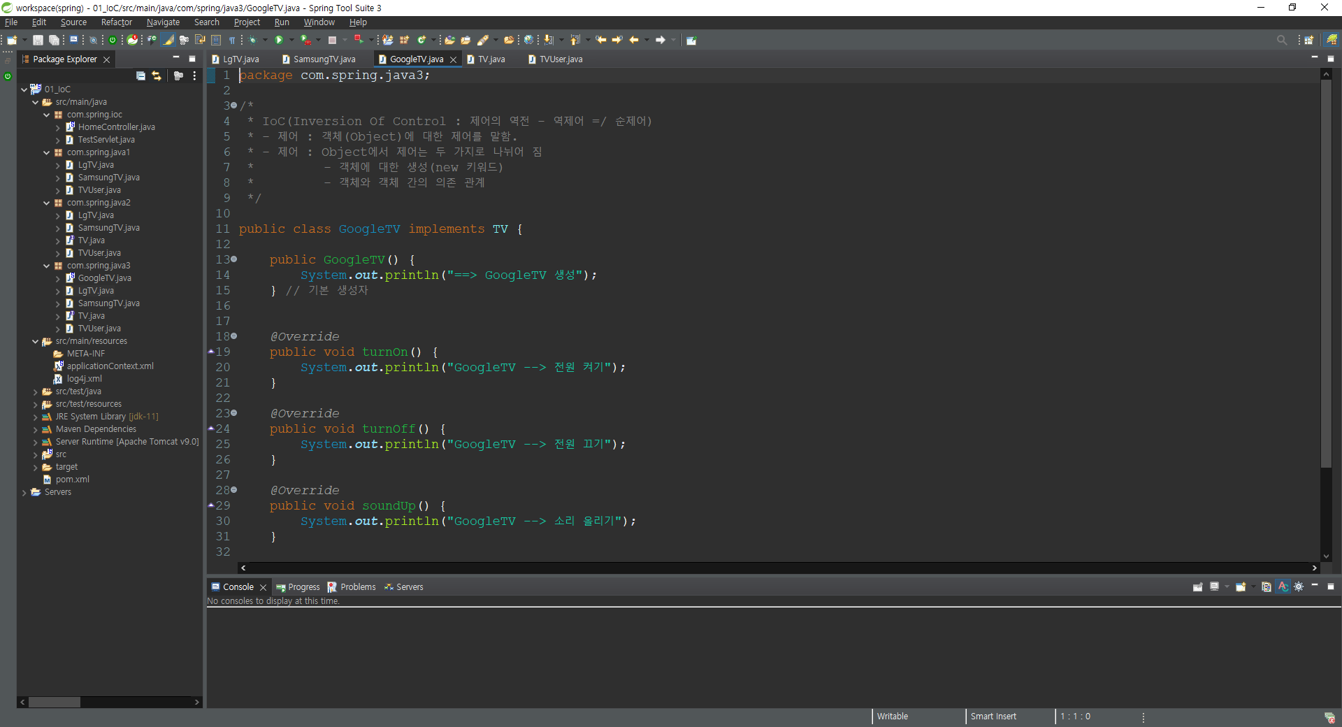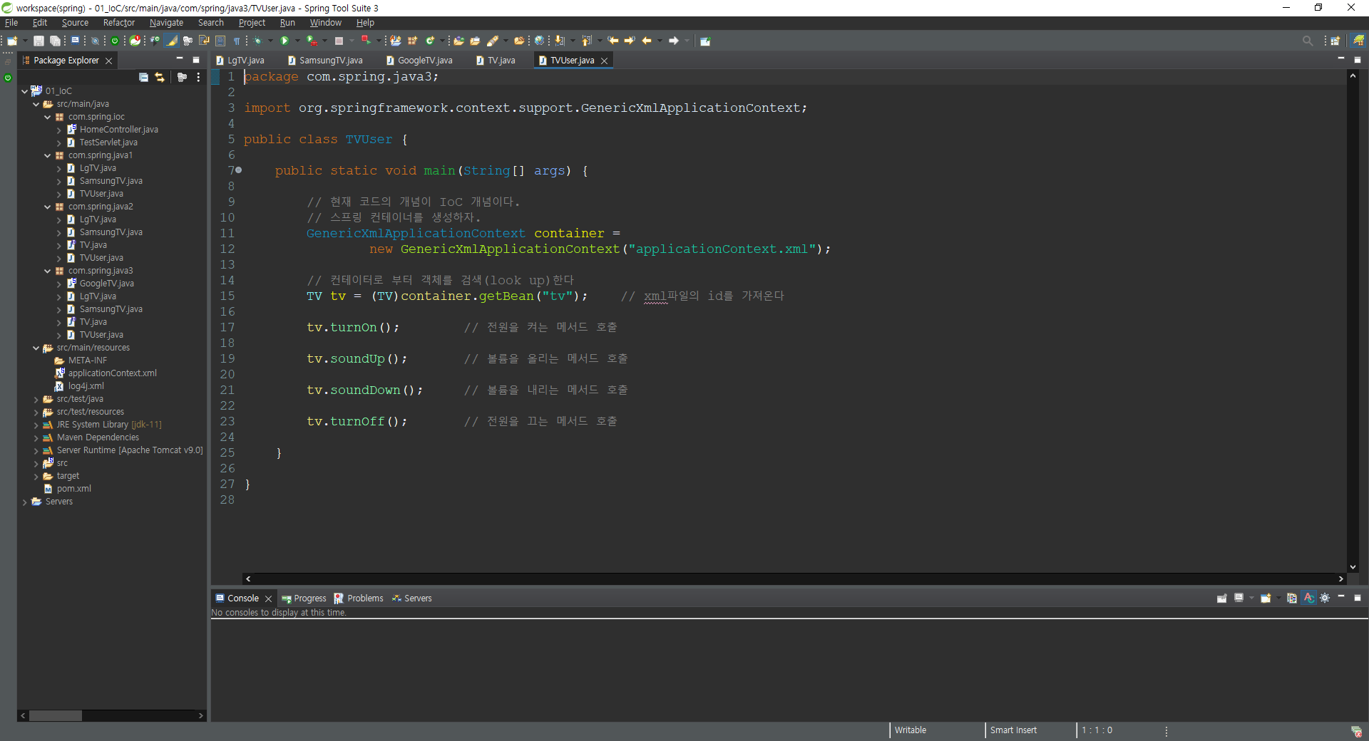 TV tv = (TV)container.getBean("tv"); // xml파일의 id를 가져온다