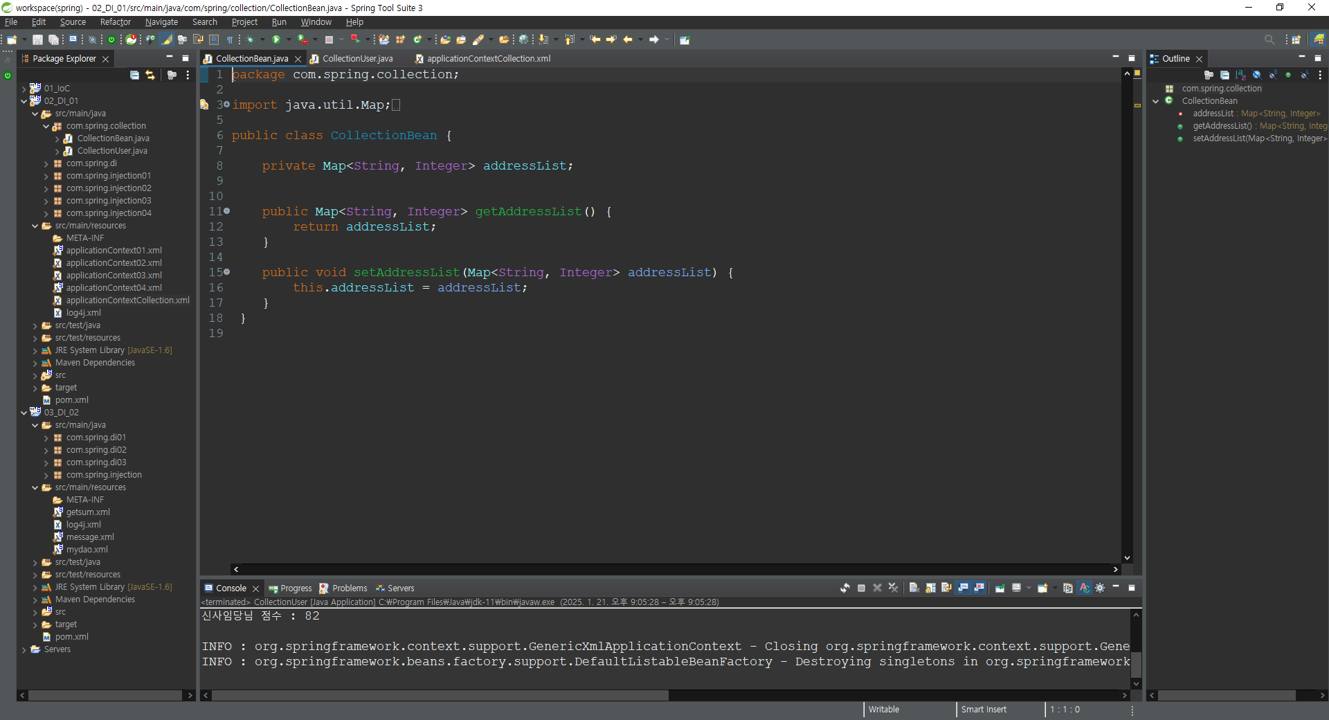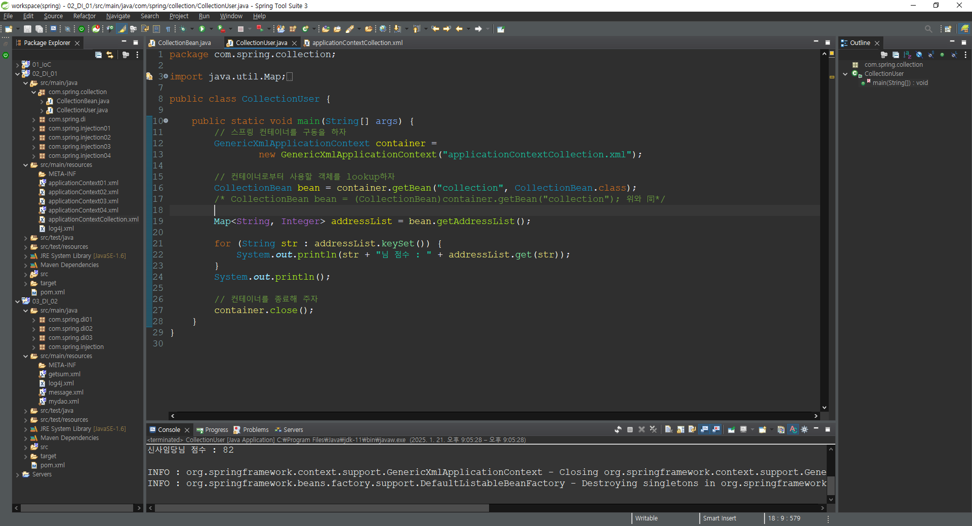 /* CollectionBean bean = (CollectionBean)container.getBean("collection"); 위와 同*/