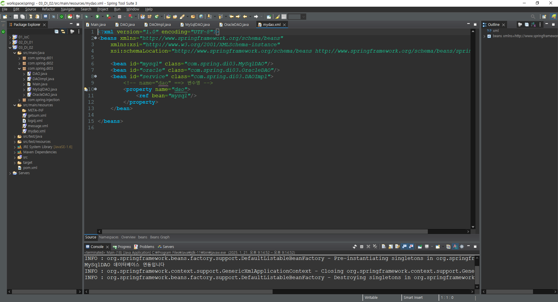 <bean id="oracle" class="com.spring.di03.OracleDAO"/>