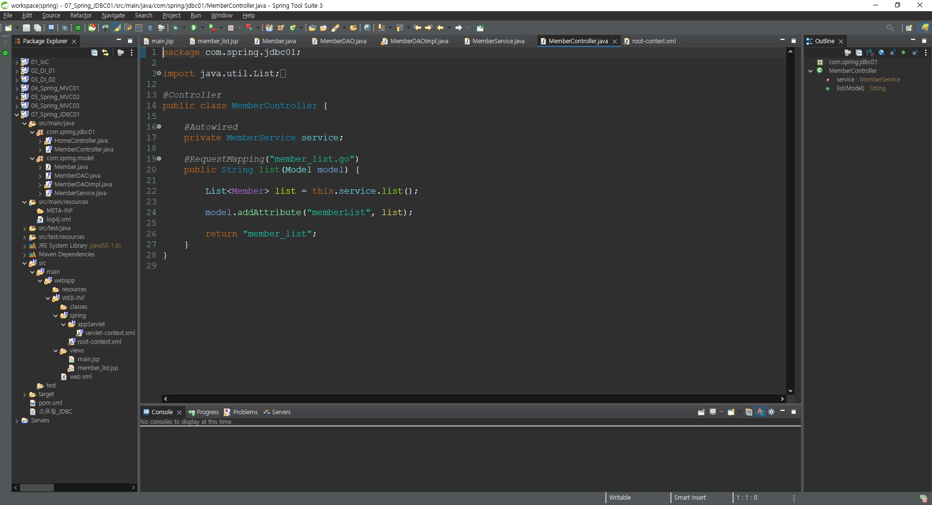 * Spring에서 일반적으로 DAO 클래스는 @Repository 애노테이션을 적용